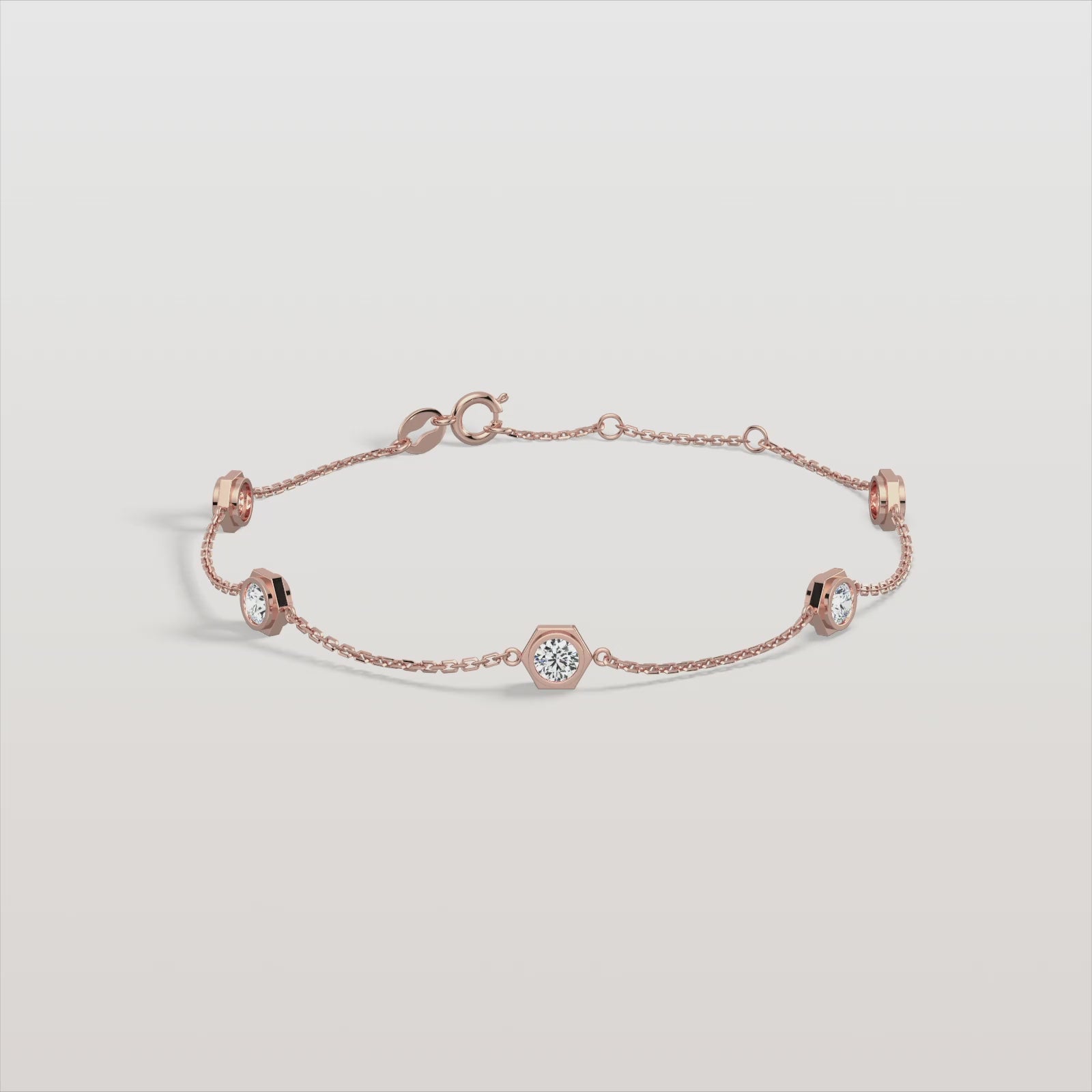 Hexagon Bezel Lab Grown Diamond Bracelet in 14K Solid Gold/Platinum