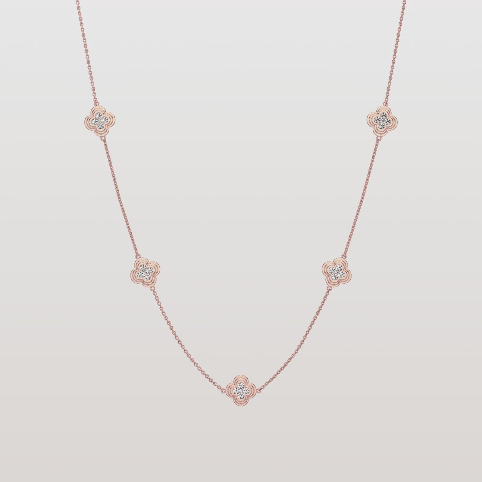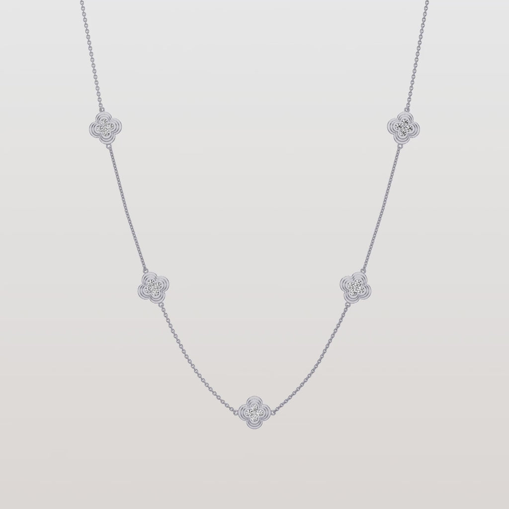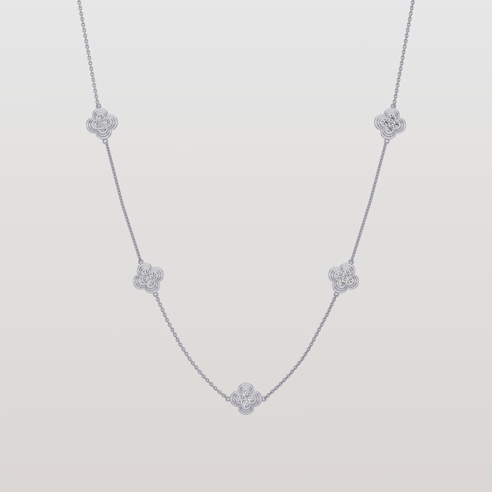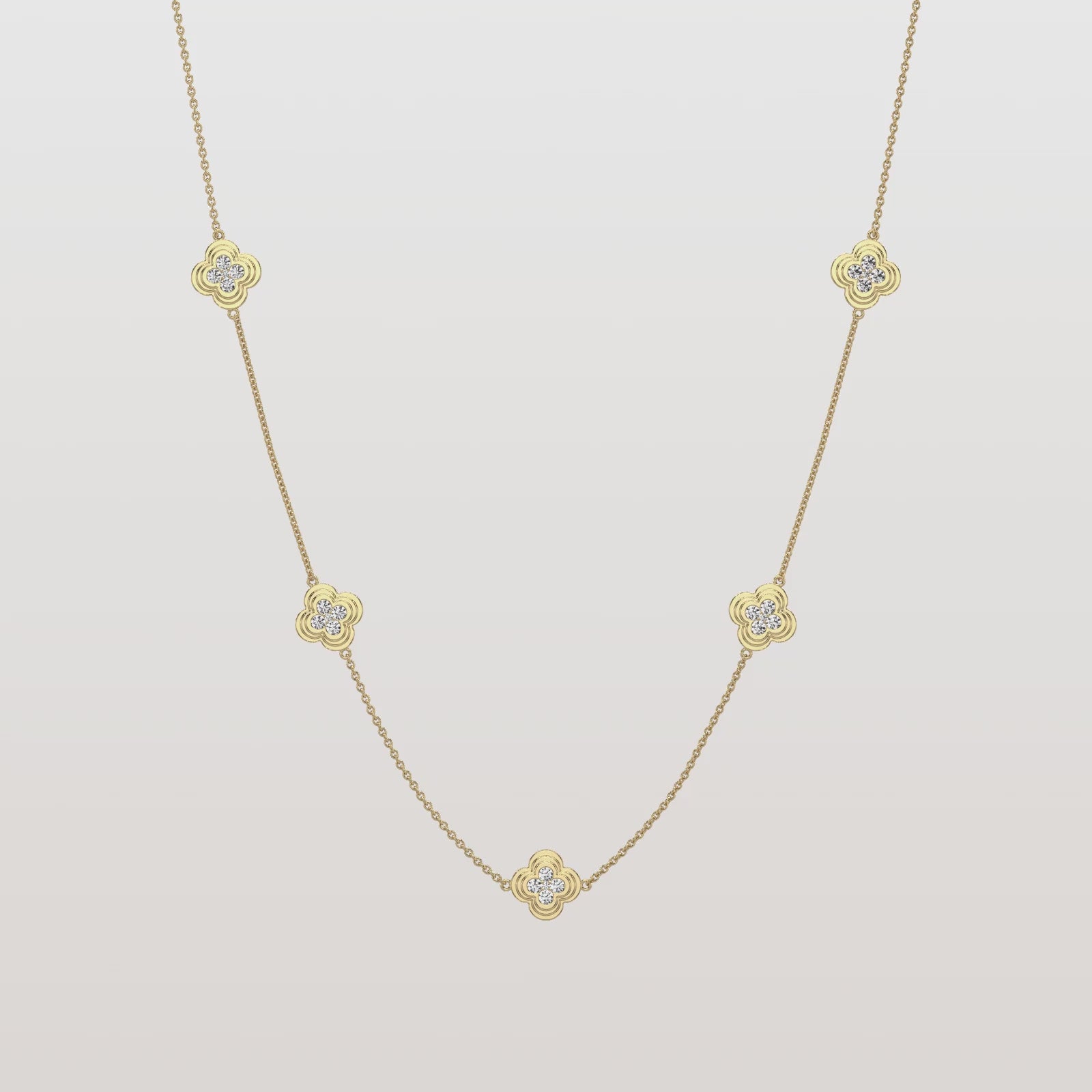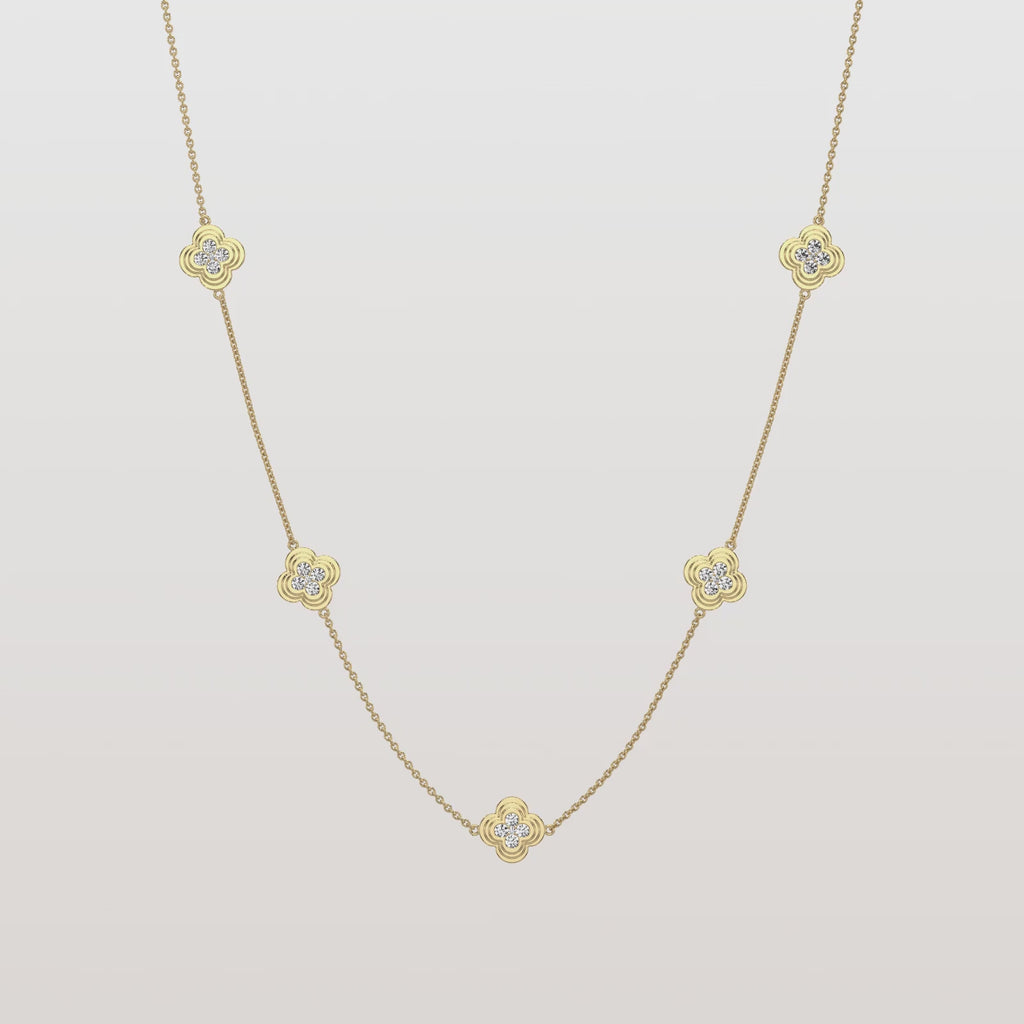Lab Grown Diamond Clover Station Necklace In 14K Solid Gold/Platinum