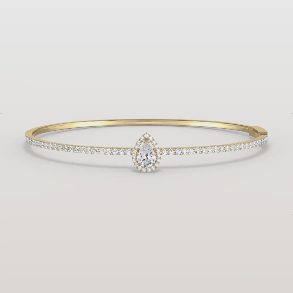 1.09CTW Pear Lab Grwon Diamond Pave Halo Bangel Bracelet