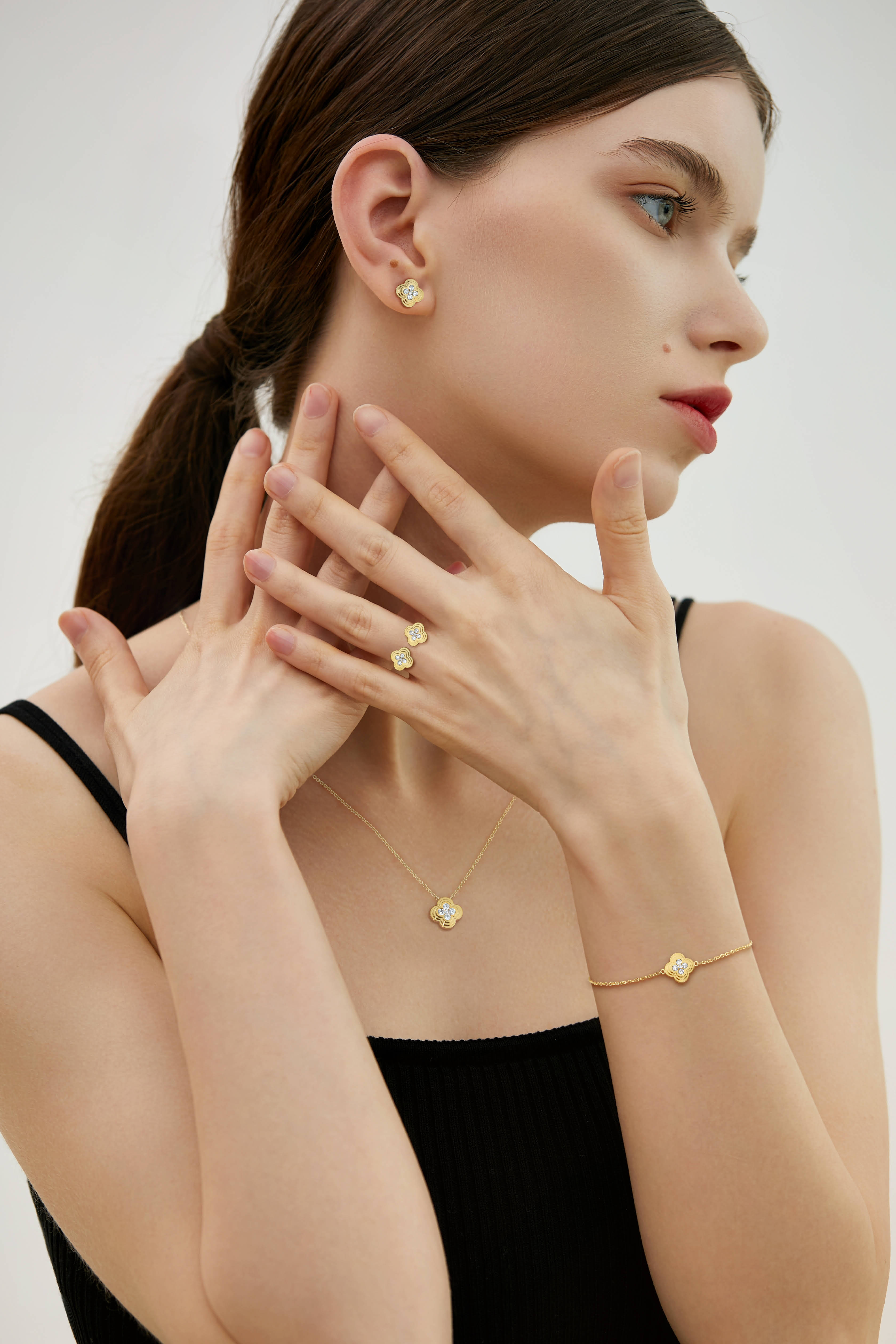 Lab Grown Diamond Clover Necklace in 14K Solid Gold/Platinum