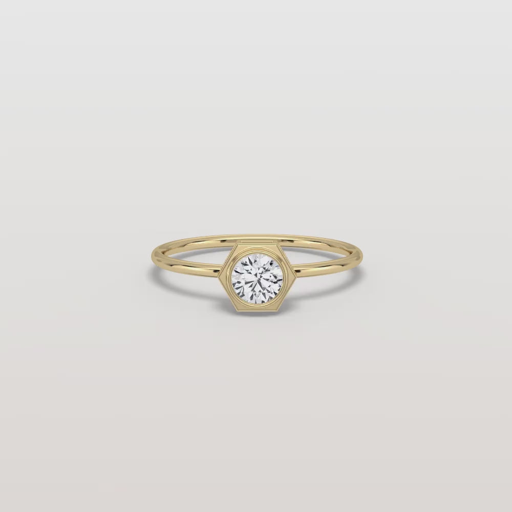 0.3CT Hexagon Bezel Solitaire Round Lab Diamond Ring
