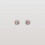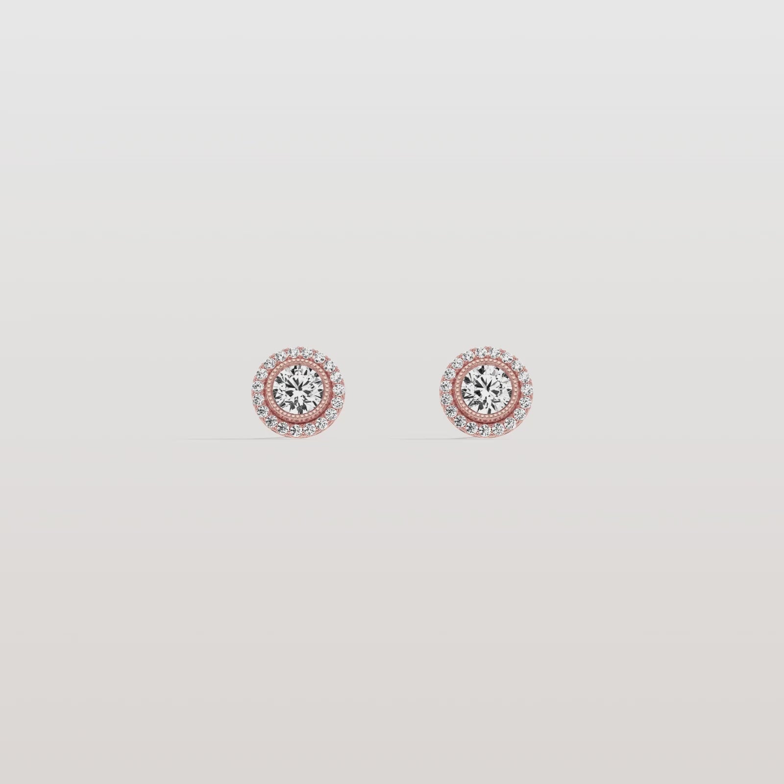 Illuminate any assemblage with this divine earring set featuring a dazzling round cut halo of lab diamonds held by a sophisticated beaded style prongs. A glamorous set for the goddess in you.