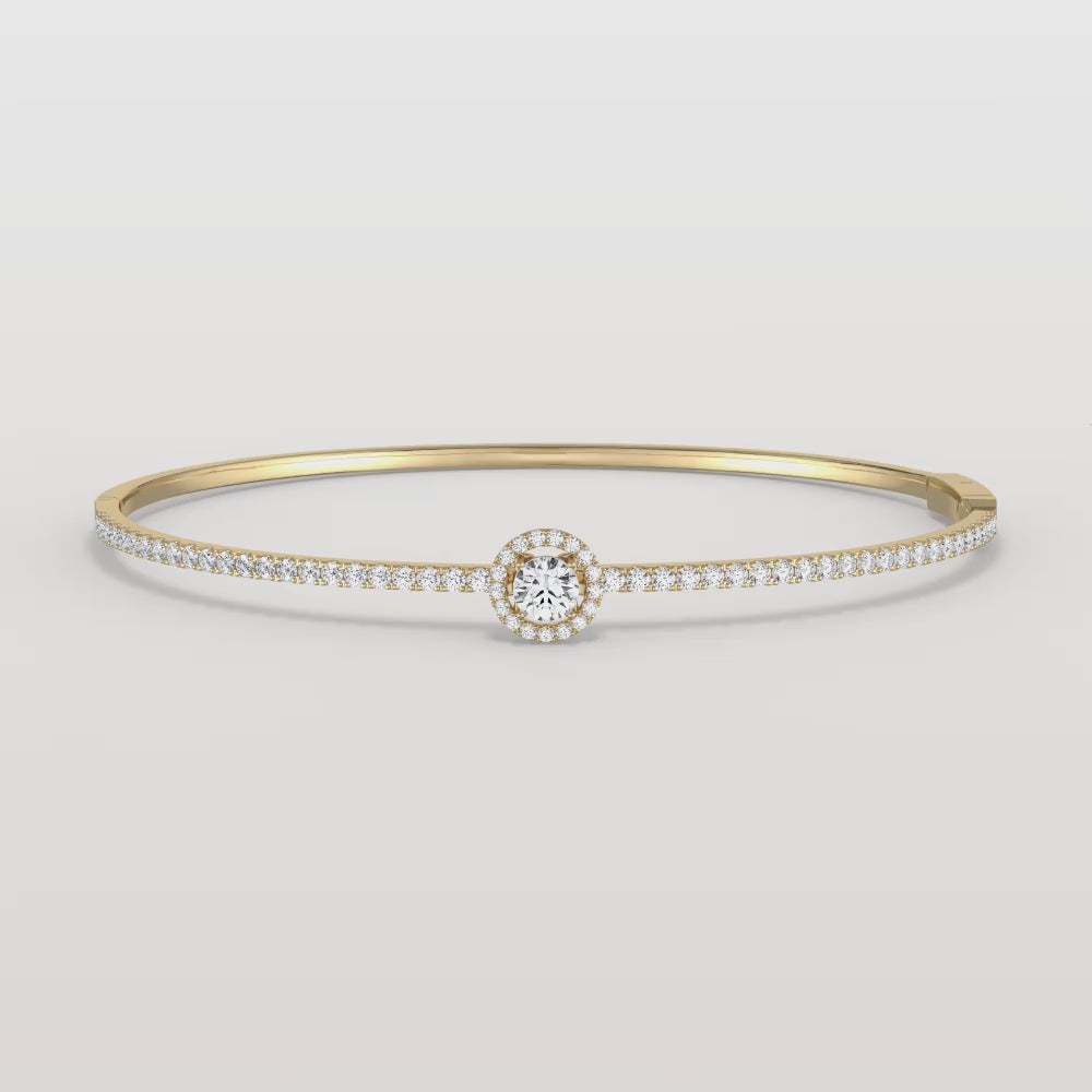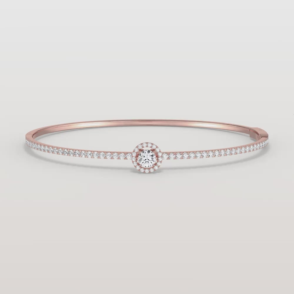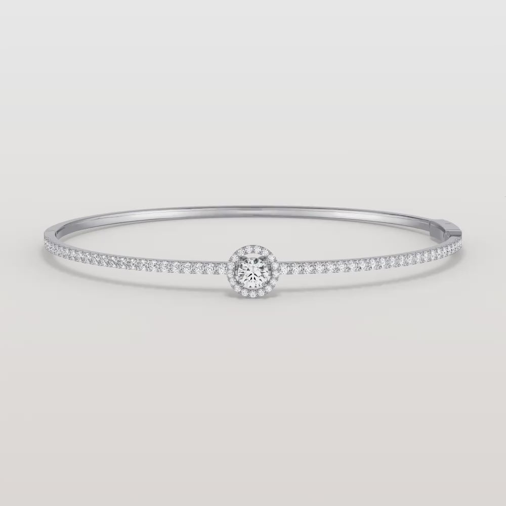 1CTW Round Lab Grwon Diamond Pave Halo Bangel Bracelet