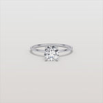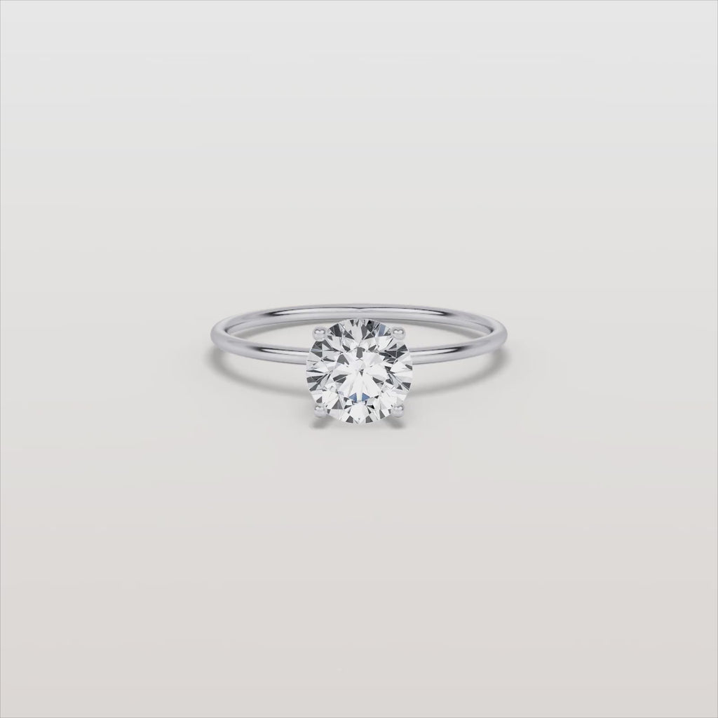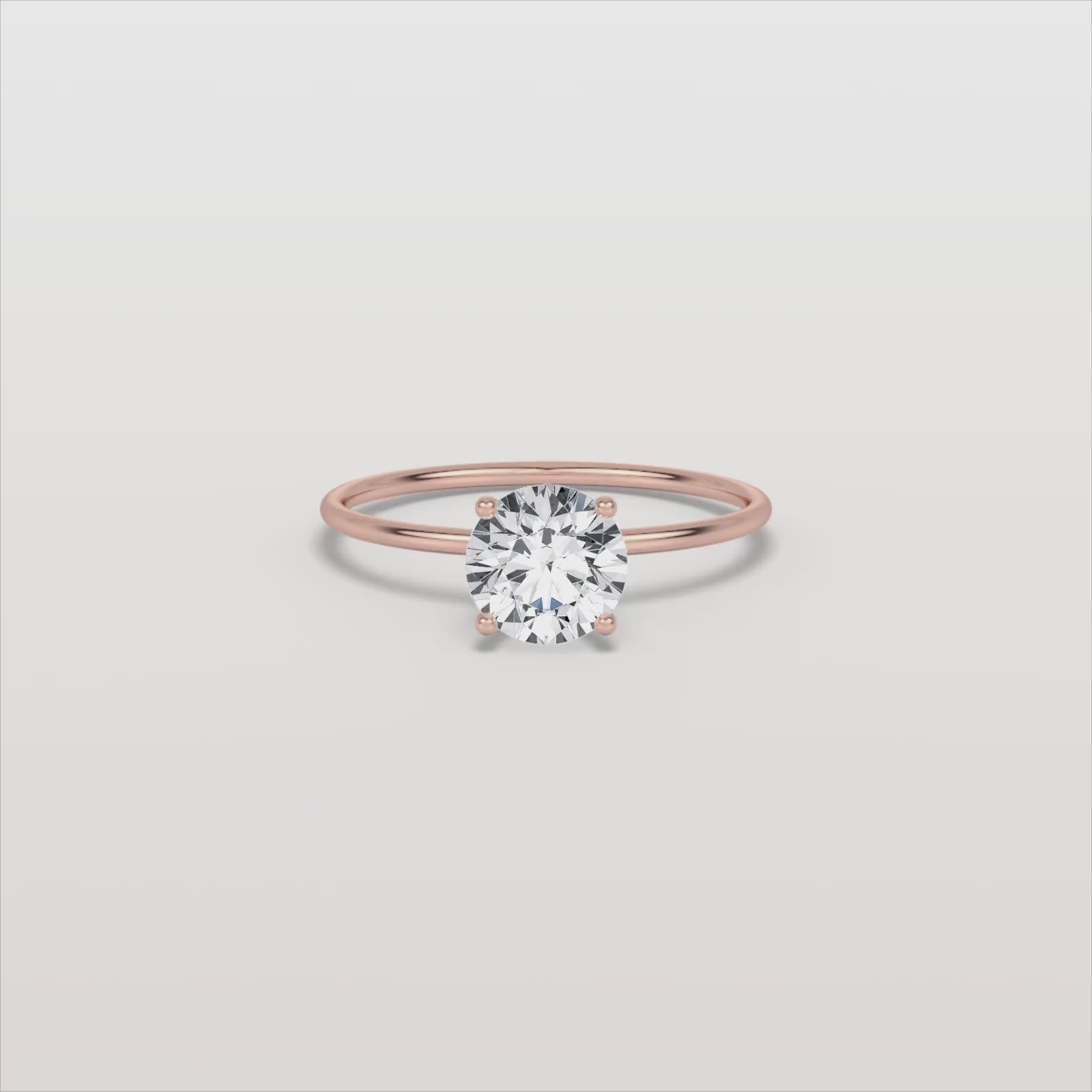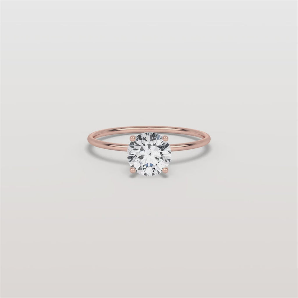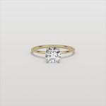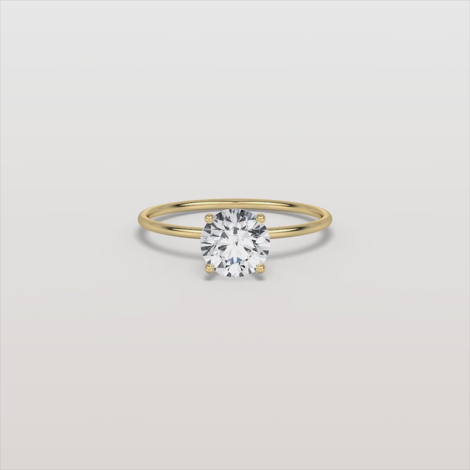 A classic solitaire engagement ring featuring a brilliant round-cut lab diamond set in a four-prong 14k gold band. This modern look, with added pavé detailing beneath the center stone for subtle sparkle from every angle.