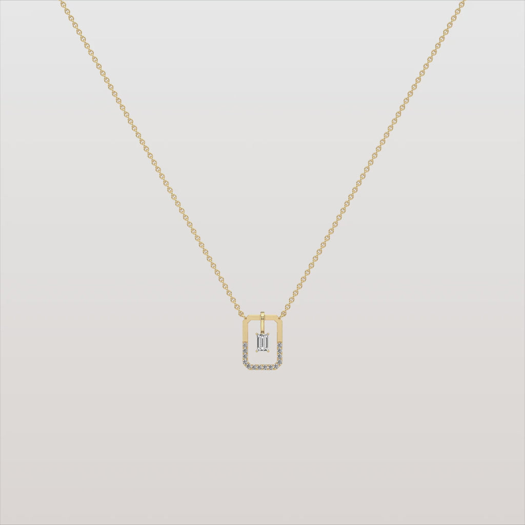 Emerald Cut Lab Diamond Rectangular Pendant Necklace