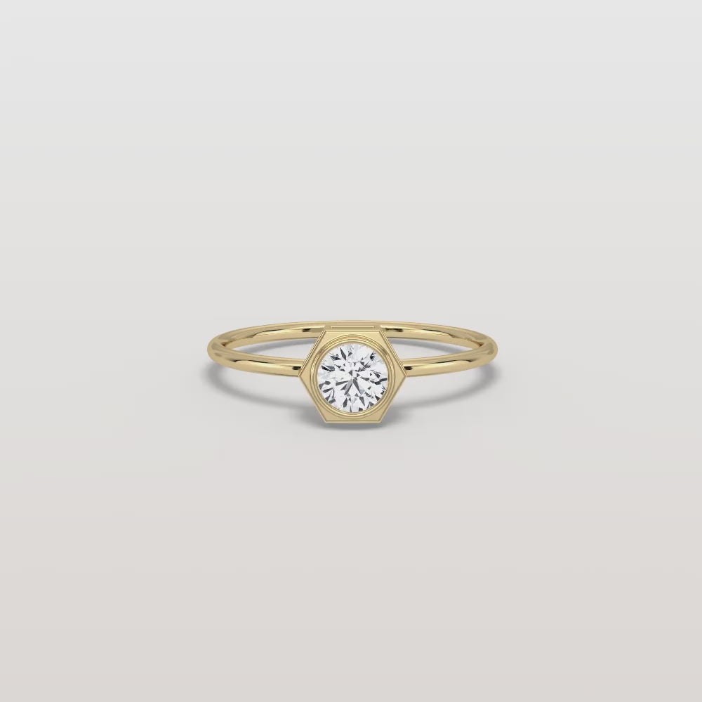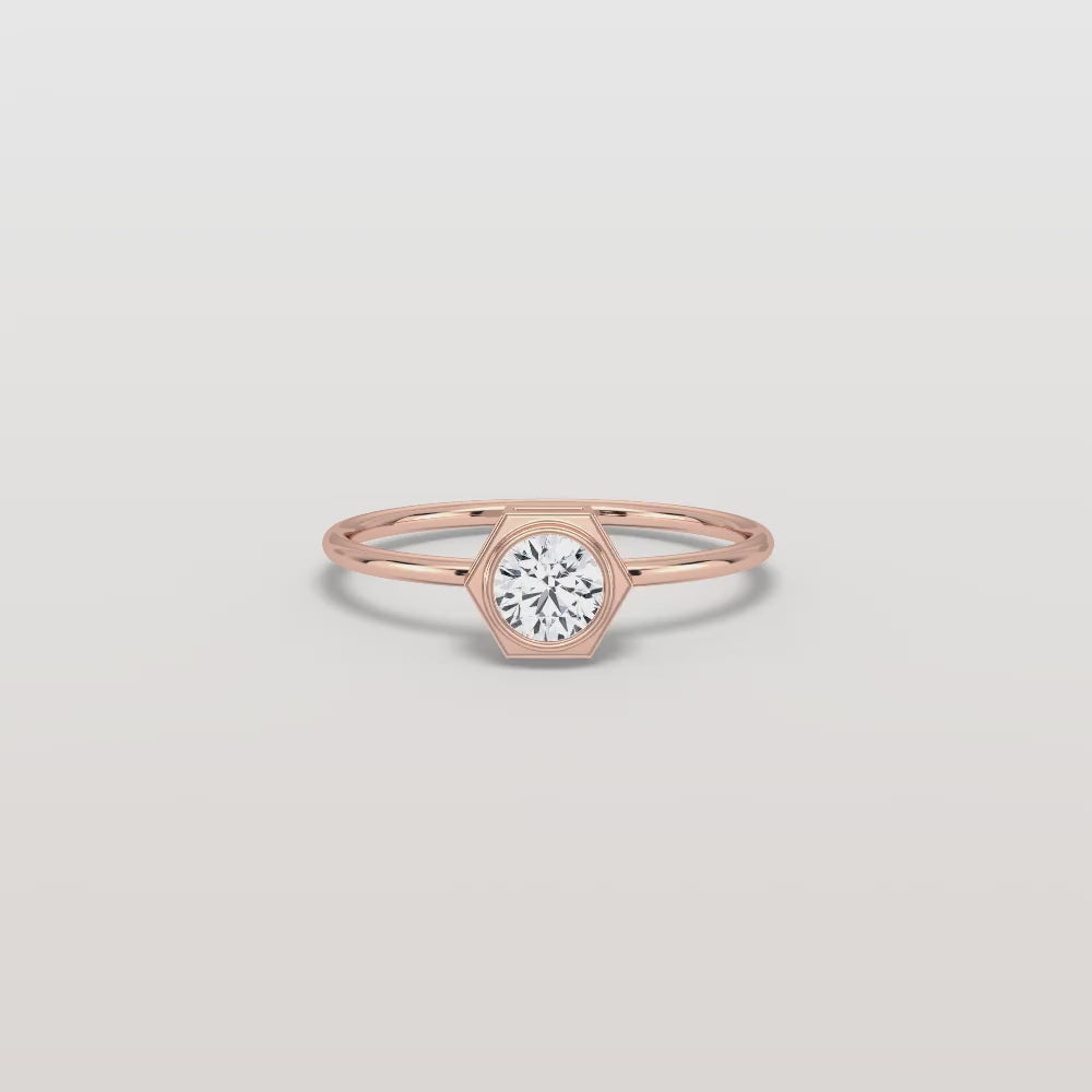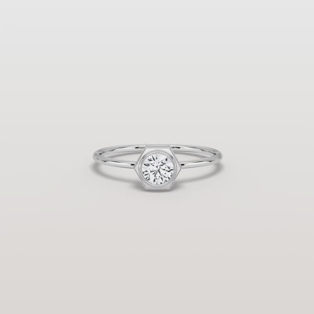 0.1CT Hexagon Bezel Solitaire Round Lab Diamond Ring