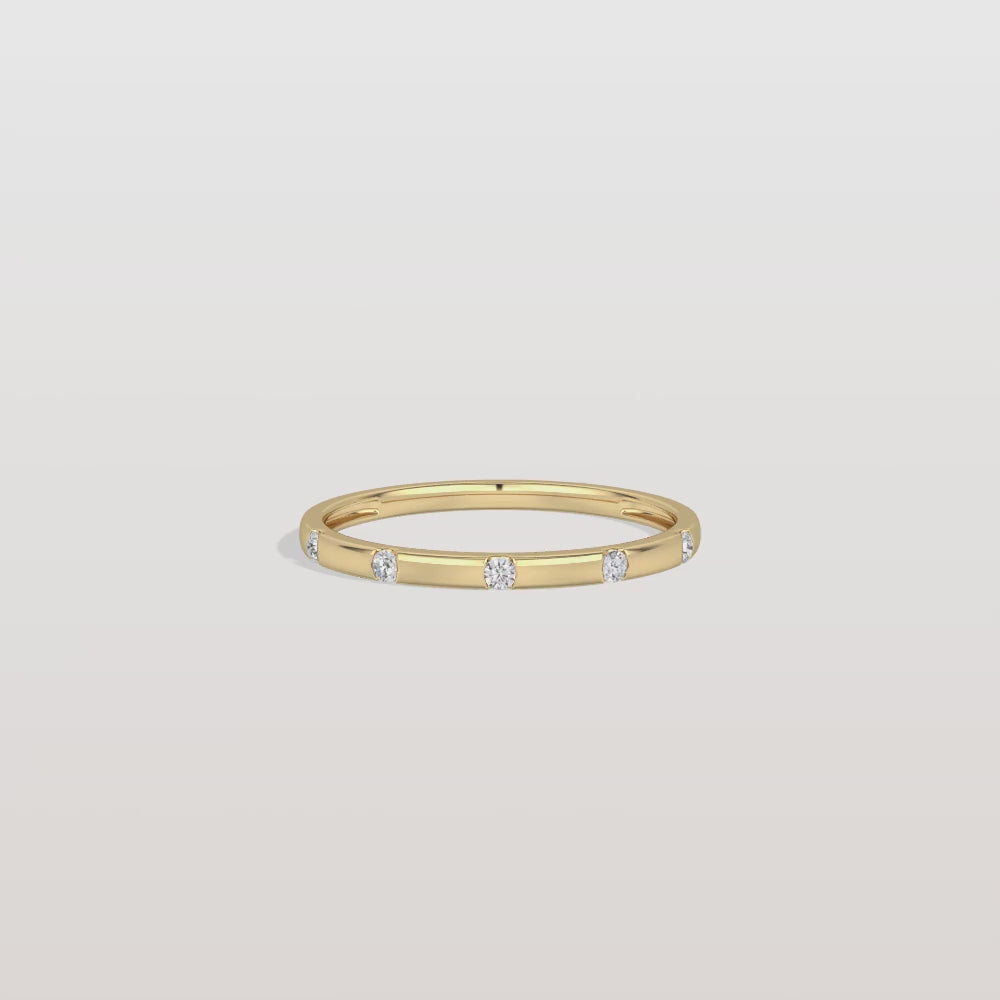 Crafted in 14K gold, this slim dainty ring features evenly spaced lab-grown diamonds - perfect for stacking or wearing solo with subtle sparkle. A whisper of sparkle you can wear every day - this 14K gold stacking ring is adorned with petite lab diamonds for effortless elegance.