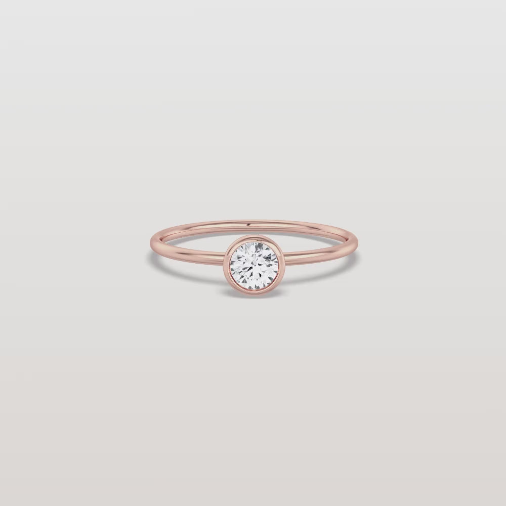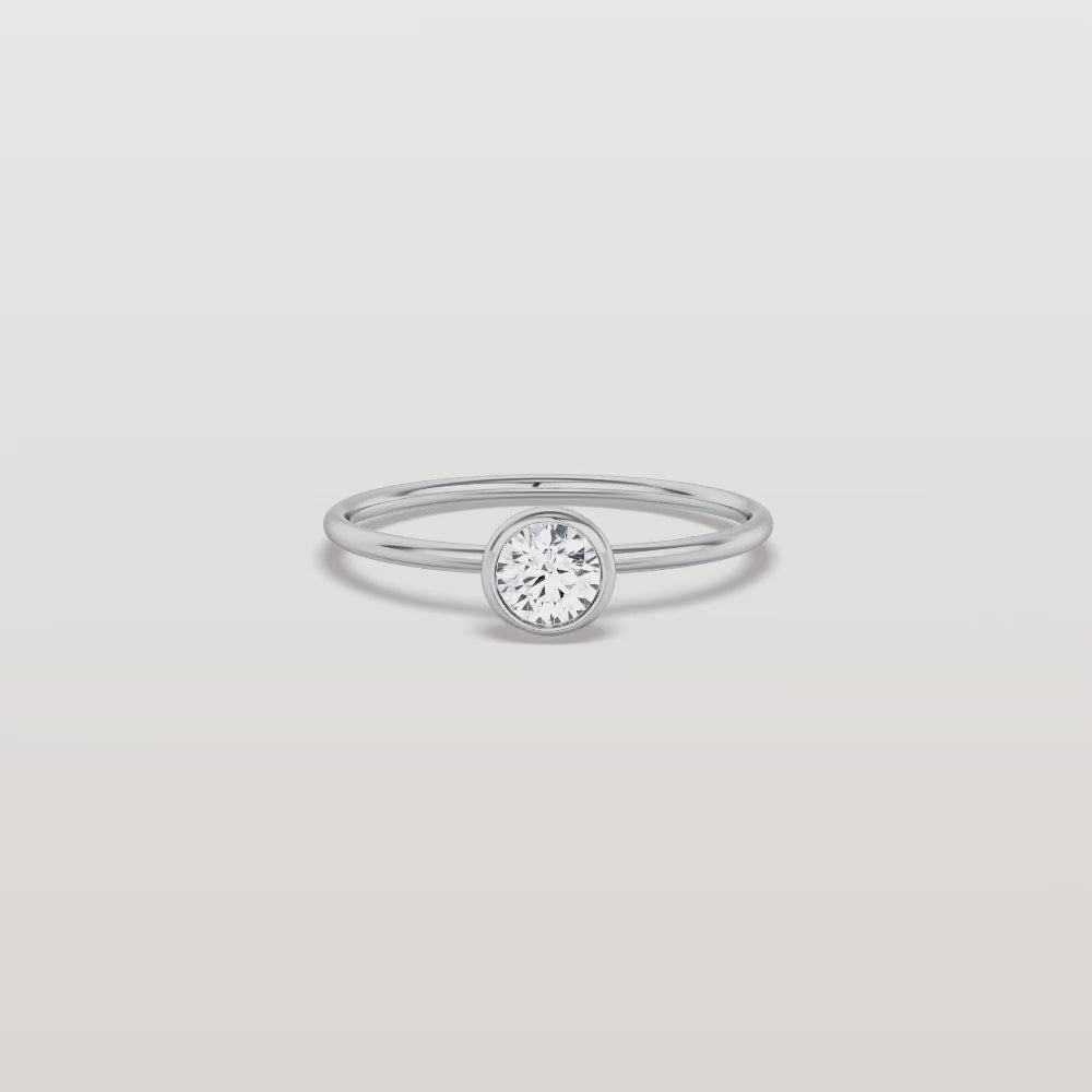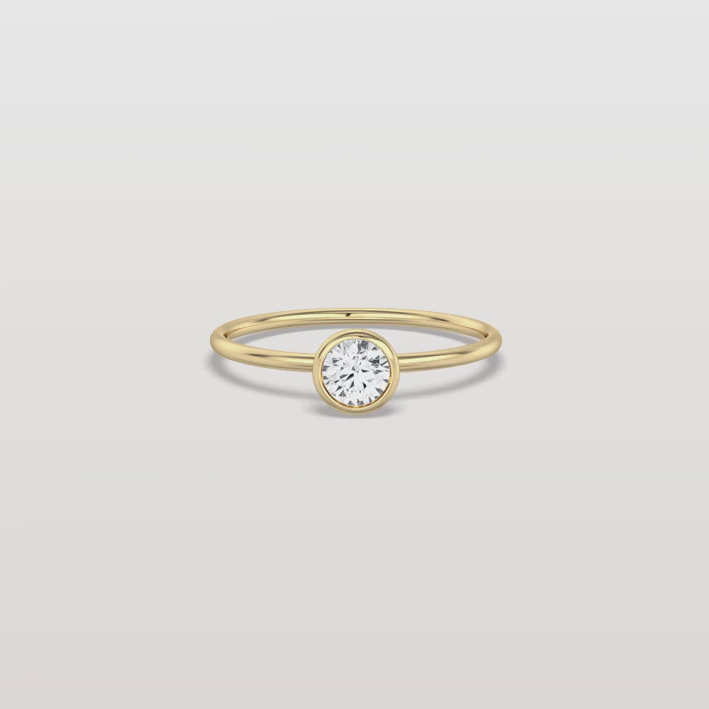 This sleek bezel set ring features a brilliant round cut lab grown diamond, securely framed in solid gold/platinum band. Effortlessly elegant and perfect for everyday wear.