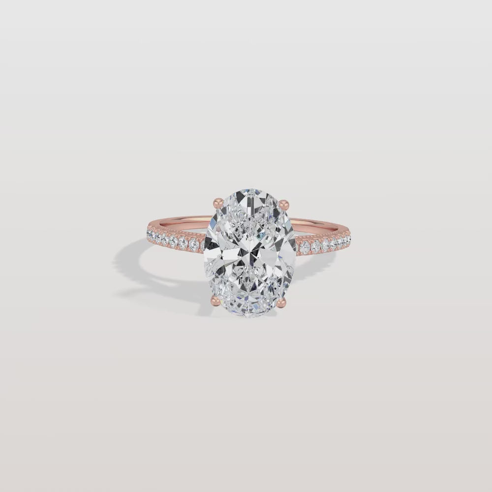 Oval Cut Pave Solitaire 3CT Lab Grown Engagement Ring