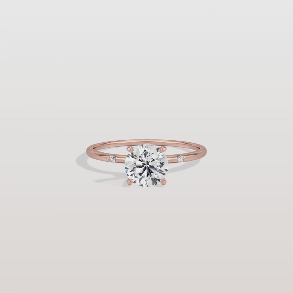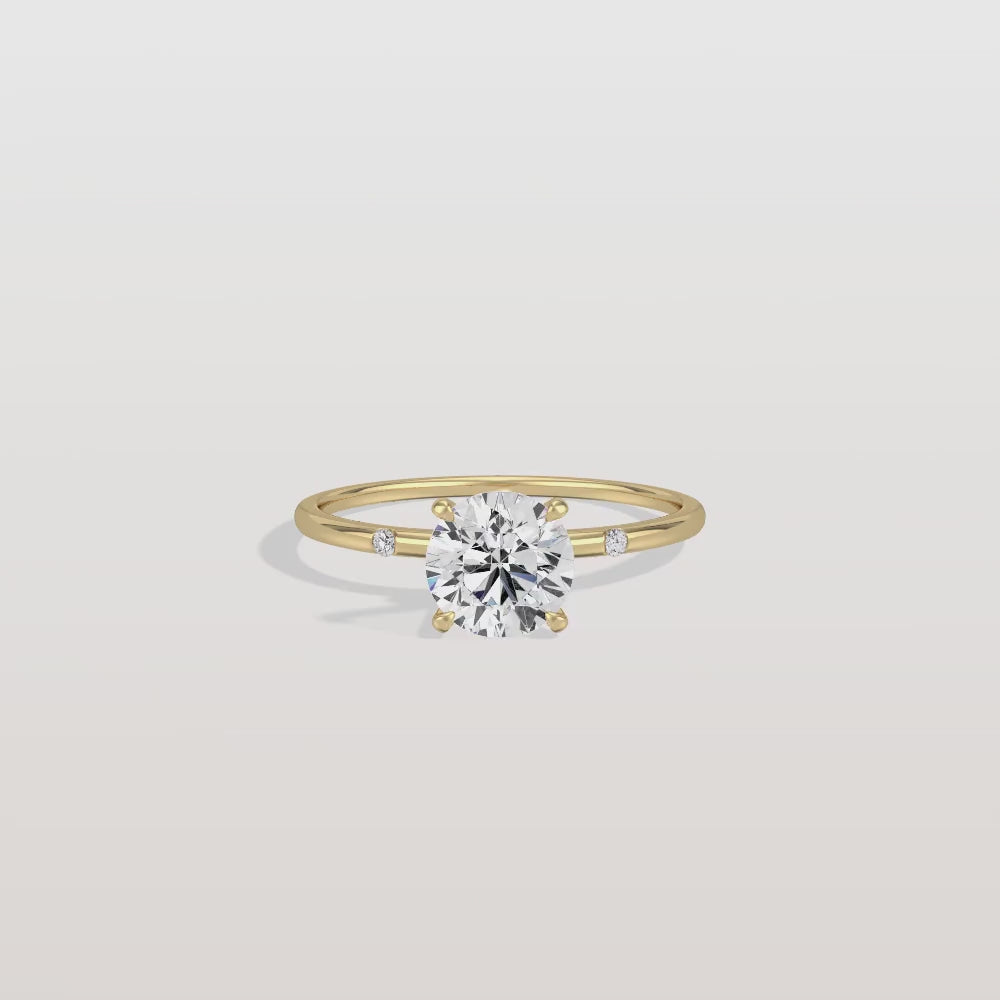 A timeless solitaire engagement ring featuring a brilliant center stone, elegantly set with delicate side diamonds on a sleek band. Understated yet captivating — perfect for those who love refined elegance.