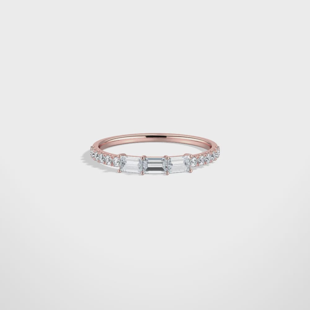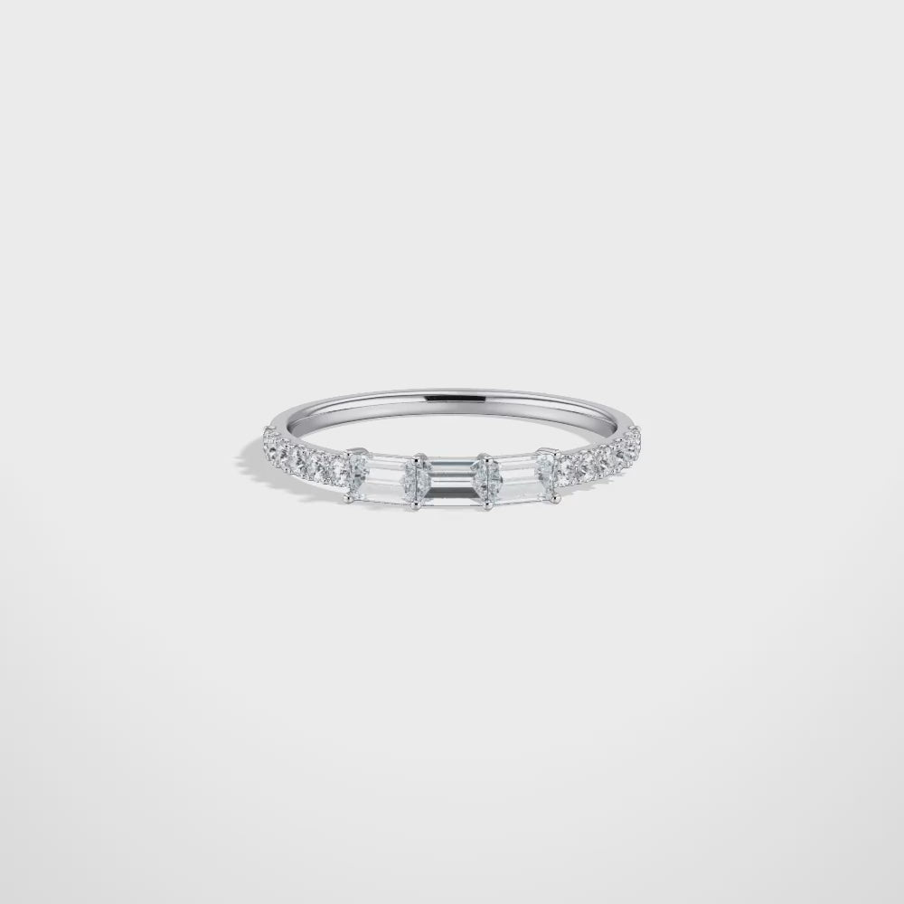 Baguette And Round Lab Diamond Half Eternity Band