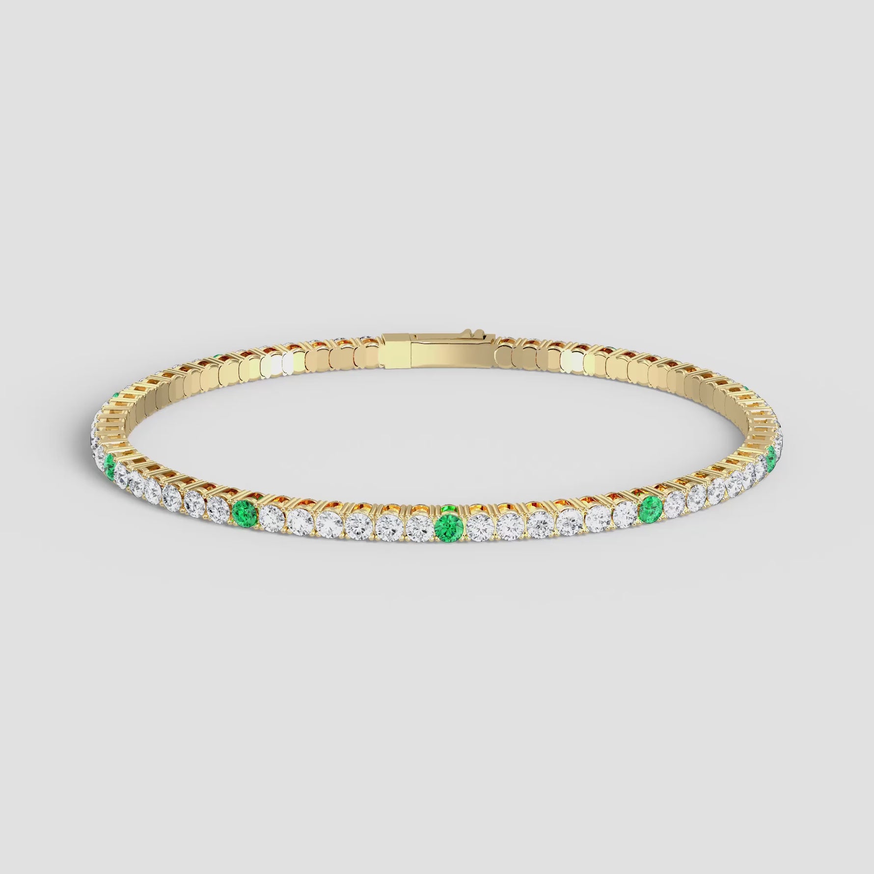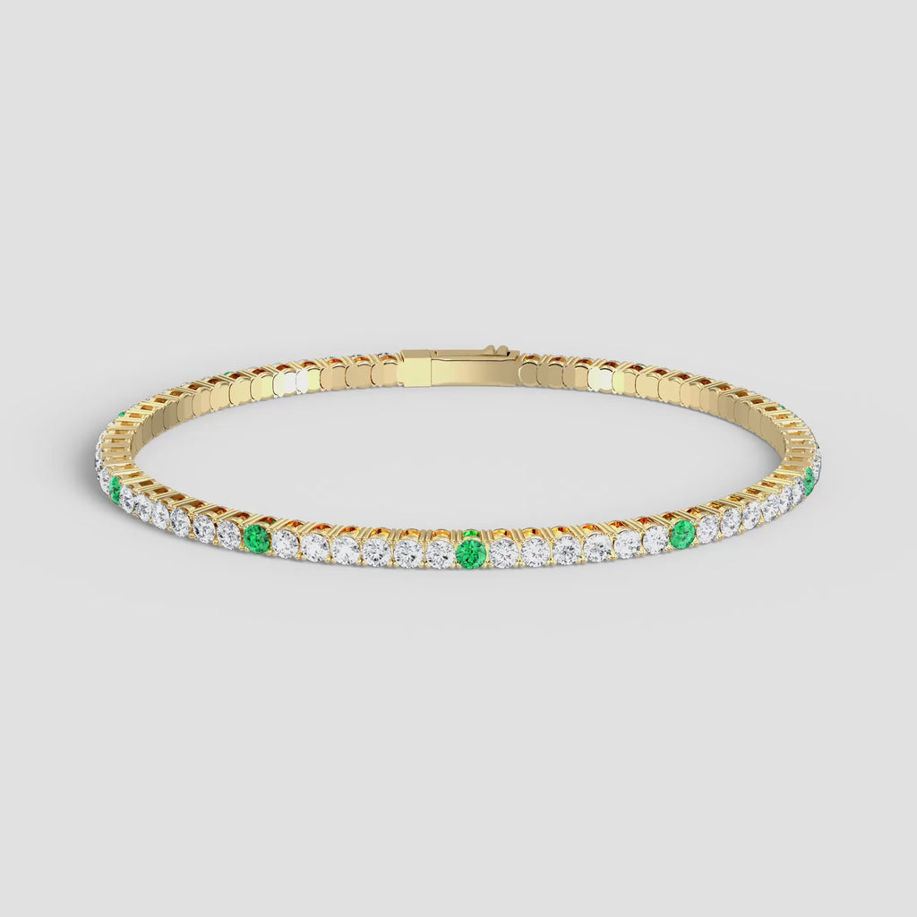 Unit price perThis bracelet redefines everyday elegance. Featuring a concealed clasp and a flexible construction, it seamlessly blends elegance and practicality. Innovative craftsmanship ensures the flexibility of a tennis chain while remaining easy to wear, making it a breeze to find a tennis bracelet. Nine captivating lab-grown emeralds interspersed between the shimmering moissanite stones create a rhythm of light and shadow, striking a perfect balance between comfort, luxury, and timeless radiance. Also available in 14K/18K Solid Gold.