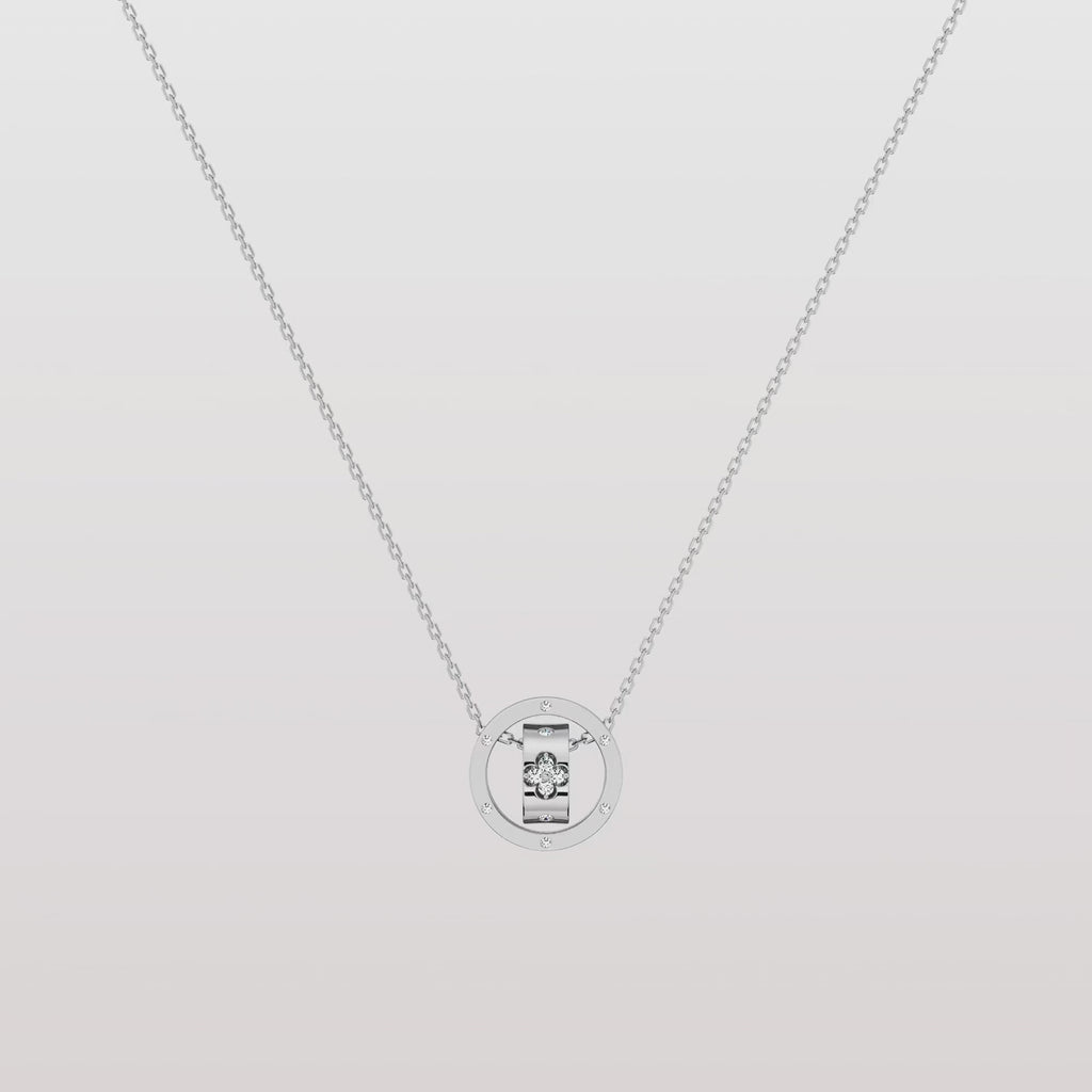 Unit price perDouble the style, double the sparkle. This exquisite pendant consists of two rings, with four high-quality moissanite stones forming the elegant four-leaf clover in the center of the inner ring. It enhances your look and brings you luck. Now Let's Create your own unique style.