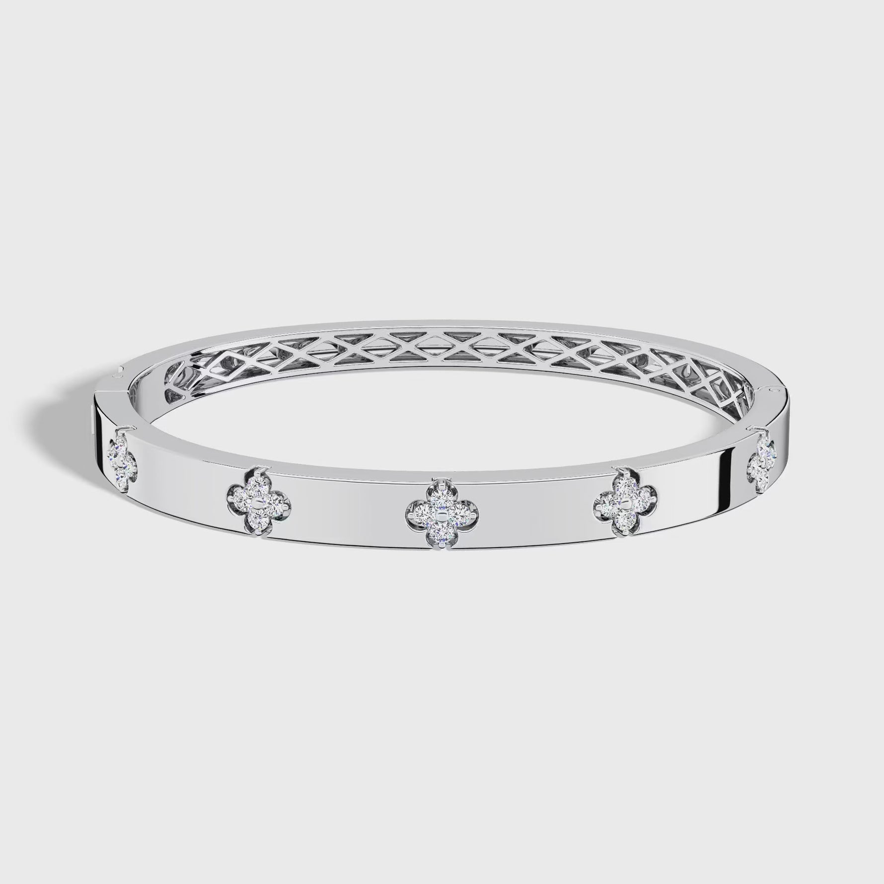 Charm & Dazzle Clover Hinged Lab Made Diamond Bangle Bracelet