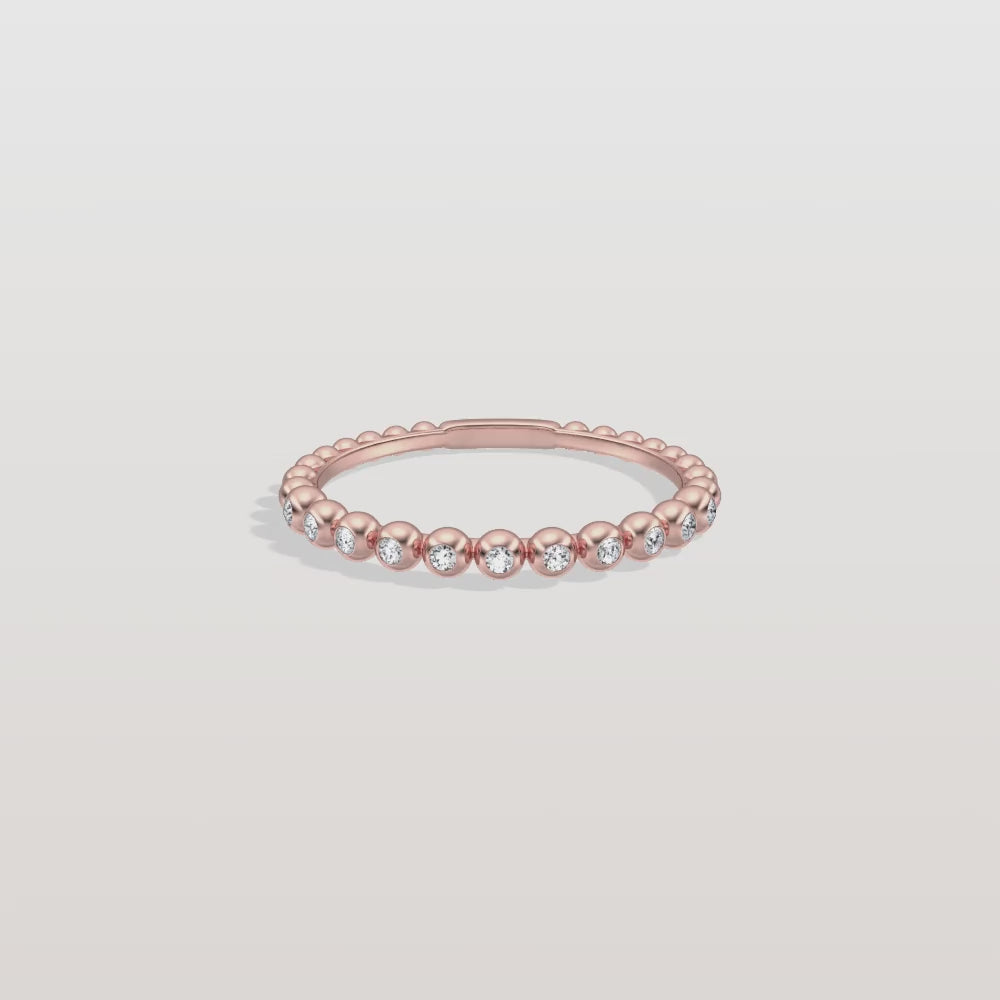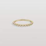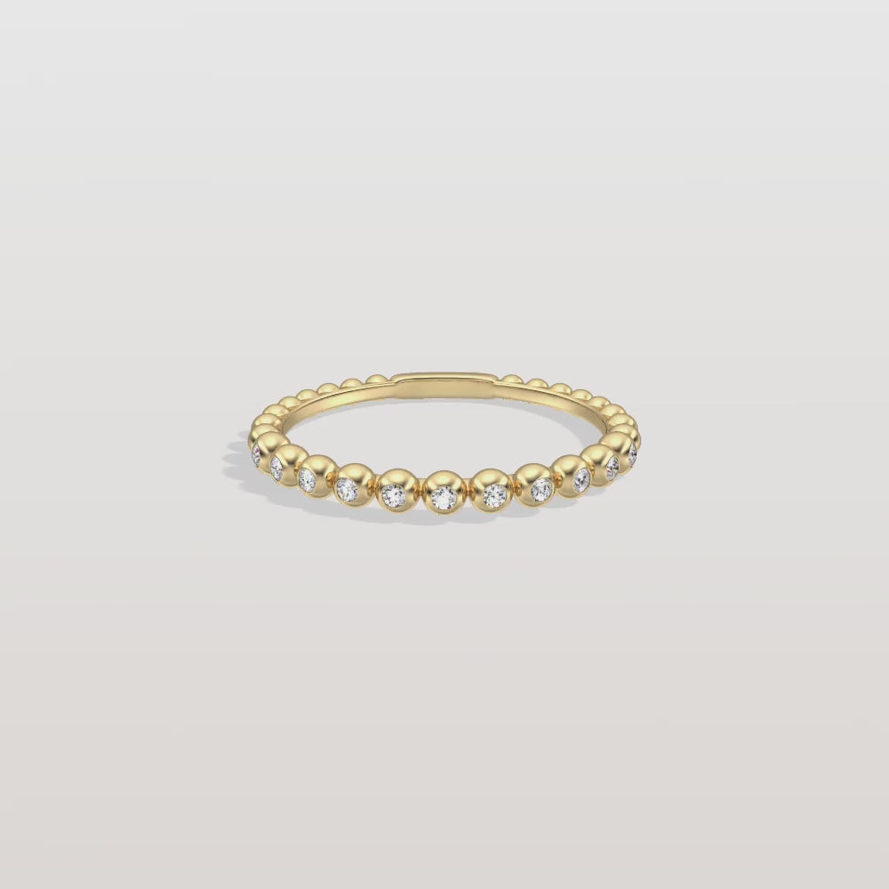 A playful yet elegant ring featuring round brilliant diamonds nestled between polished gold/platinum beads. Ideal for stacking or wearing solo.