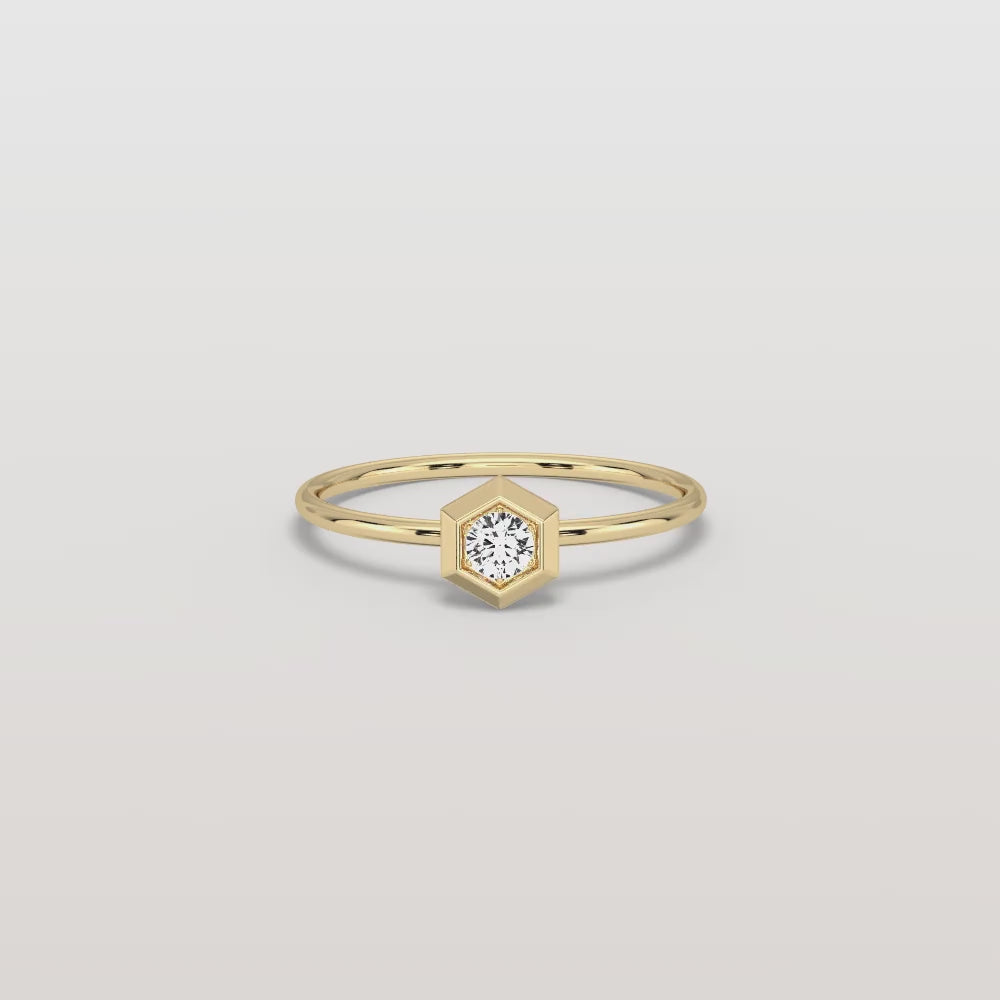Hexagon Lab Grown Diamond Fashion Ring in 14K Solid Gold/Platinum
