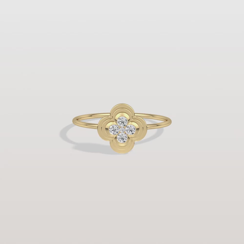 Grace meets geometry in this 14K gold clover ring, featuring lab-grown diamonds that radiate timeless sparkle. A delicate yet distinctive choice for everyday elegance.
