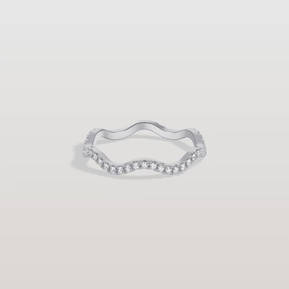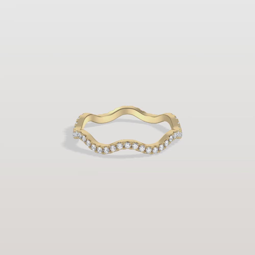 A graceful wave design lined with shimmering lab diamonds for a modern yet romantic look.