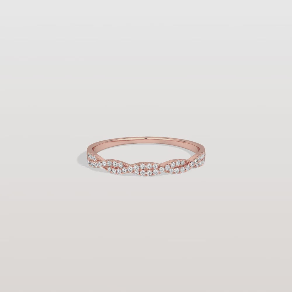 Twisted Pave Wedding Band-Stackable 14K Gold/Platinum Ring