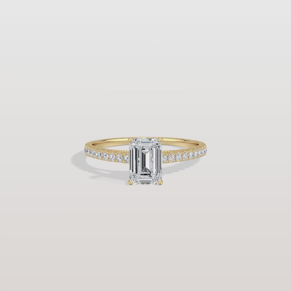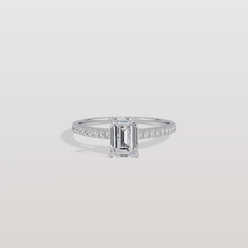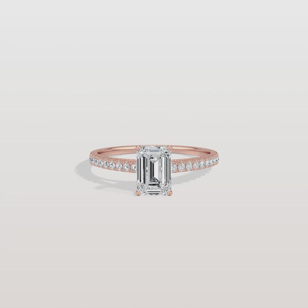 Suri丨Emerald Cut Solitaire Pave 1CT Lab Grown Engagement Ring