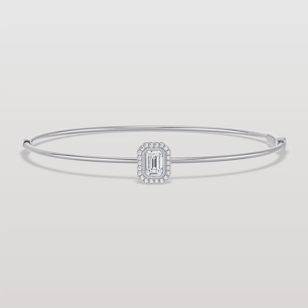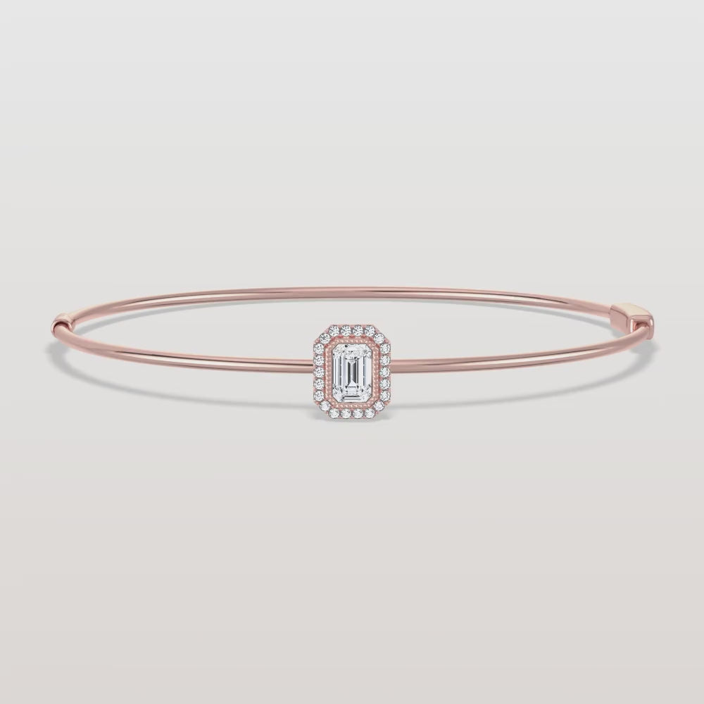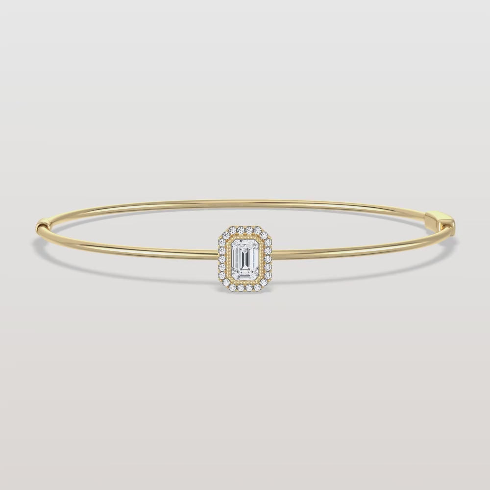 0.5CT Emerald Cut Lab Diamond Halo Bangle In 14K Solid Gold/Platinum