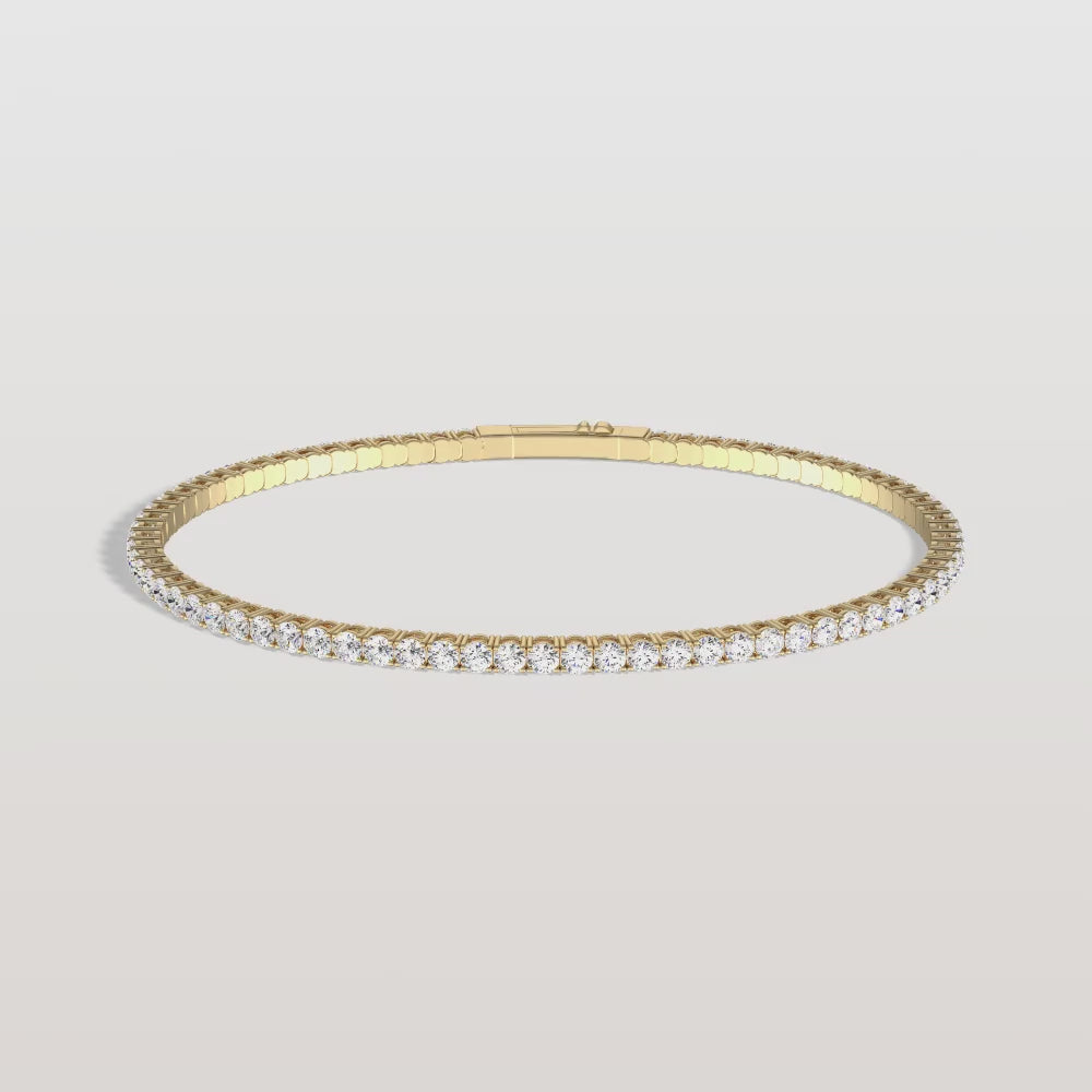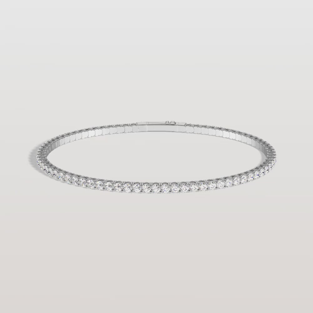 Unit price perA flexible bangle is like a tennis bracelet but holds its shape like a bangle. It shines like a tennis bracelet, holds firm like a bangle, yet feels more comfortable to wear than either.