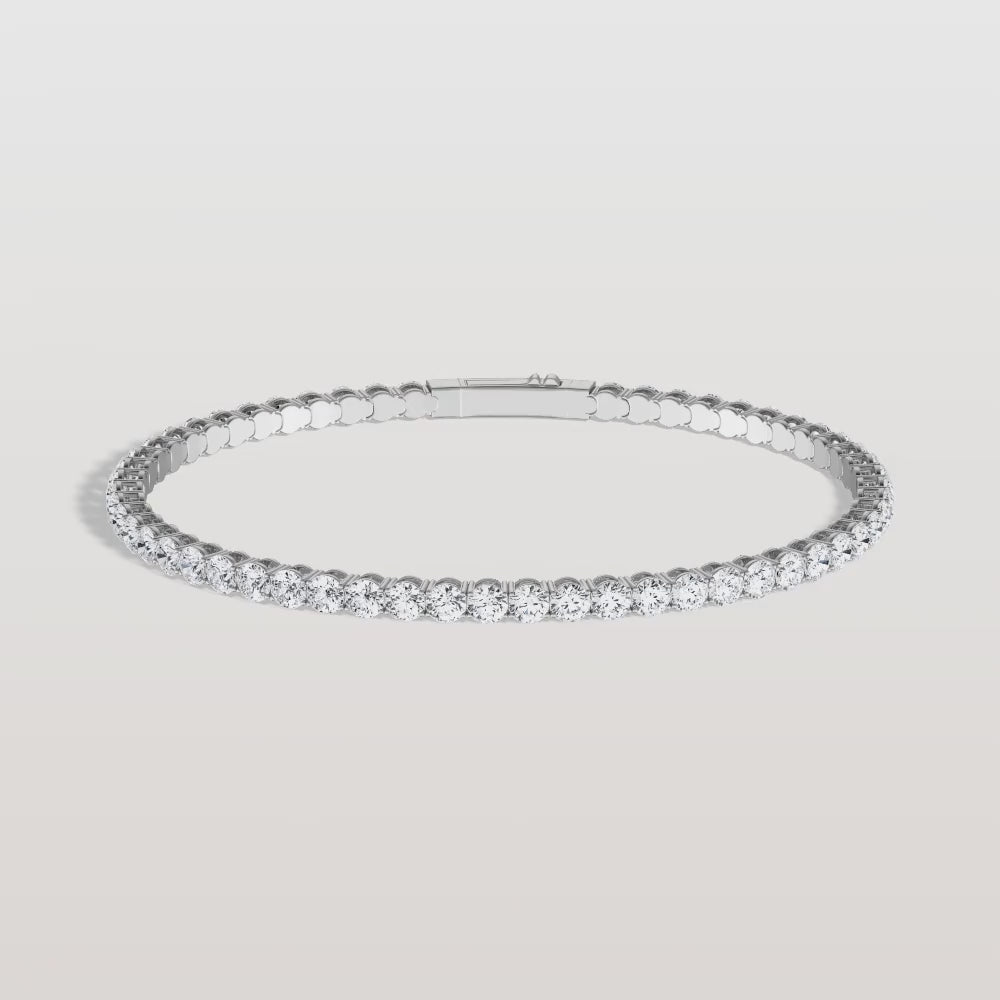 Unit price perA flexible bangle is like a tennis bracelet but holds its shape like a bangle. It shines like a tennis bracelet, holds firm like a bangle, yet feels more comfortable to wear than either.