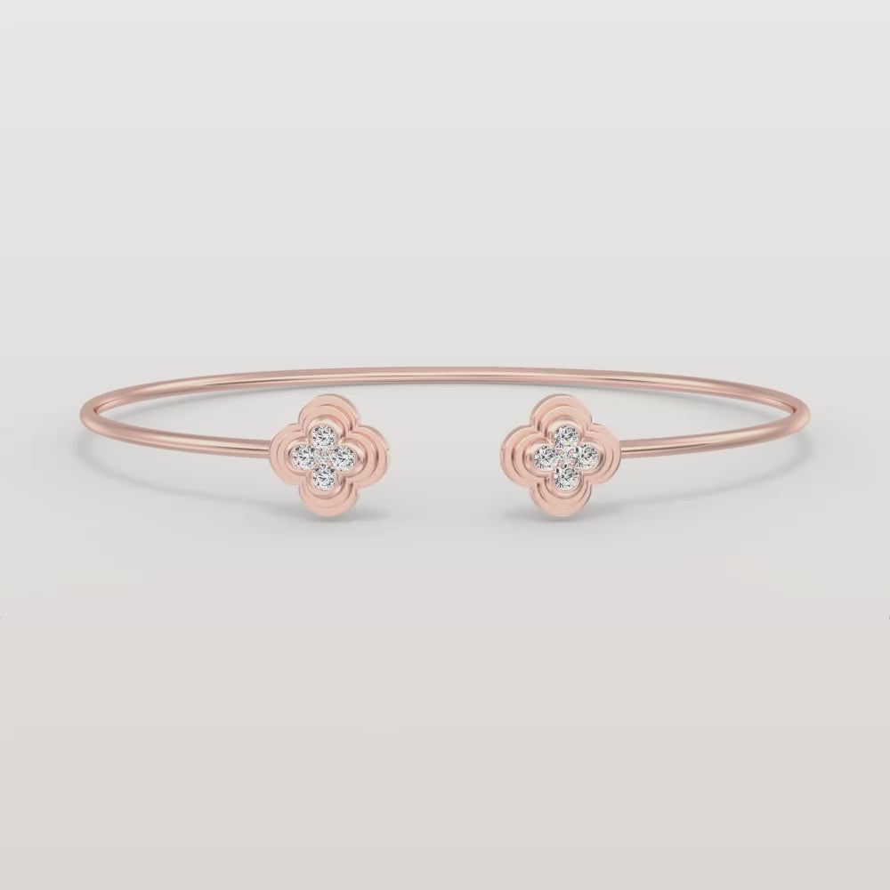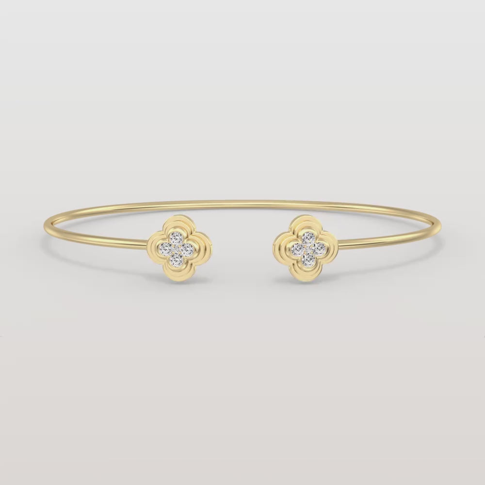 Lab Grown Diamond Bangle Bracelet With Clover Design
