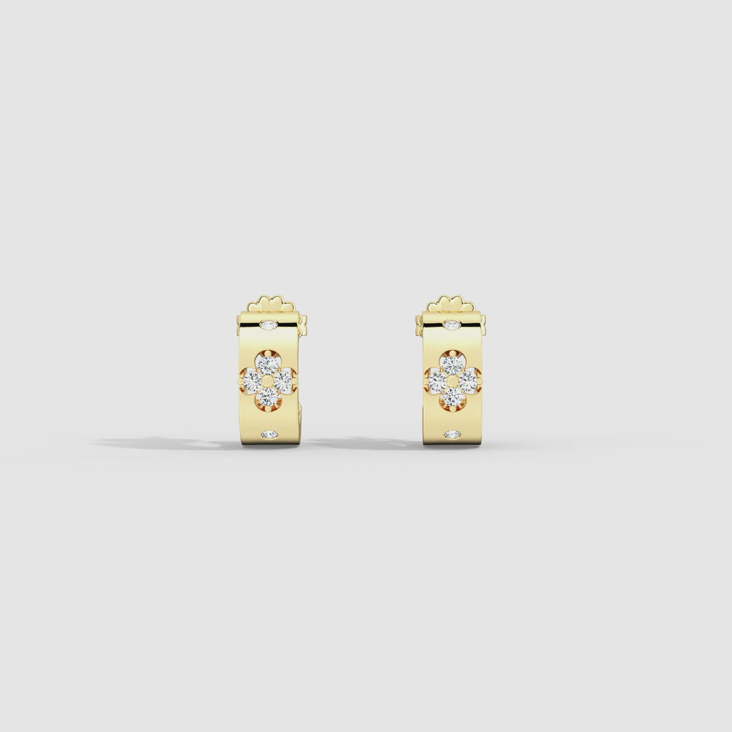 Unit price perThis design features a lucky four-leaf clover. The hollow inner circle and sparkling moissanite outer both represent good fortune and happiness. We make the chunky hoop earrings with D Color VVS1 Clarity 3EX Cut moissanite.