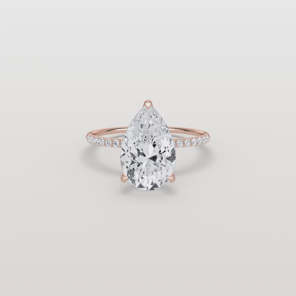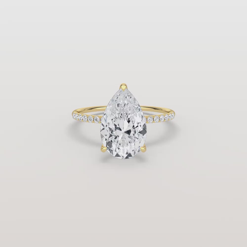 Selene丨3CT Pear Lab Diamond Engagement Ring–Pave Band in 14K Gold