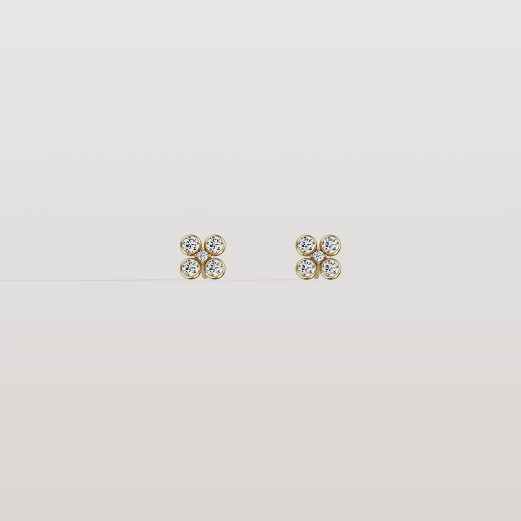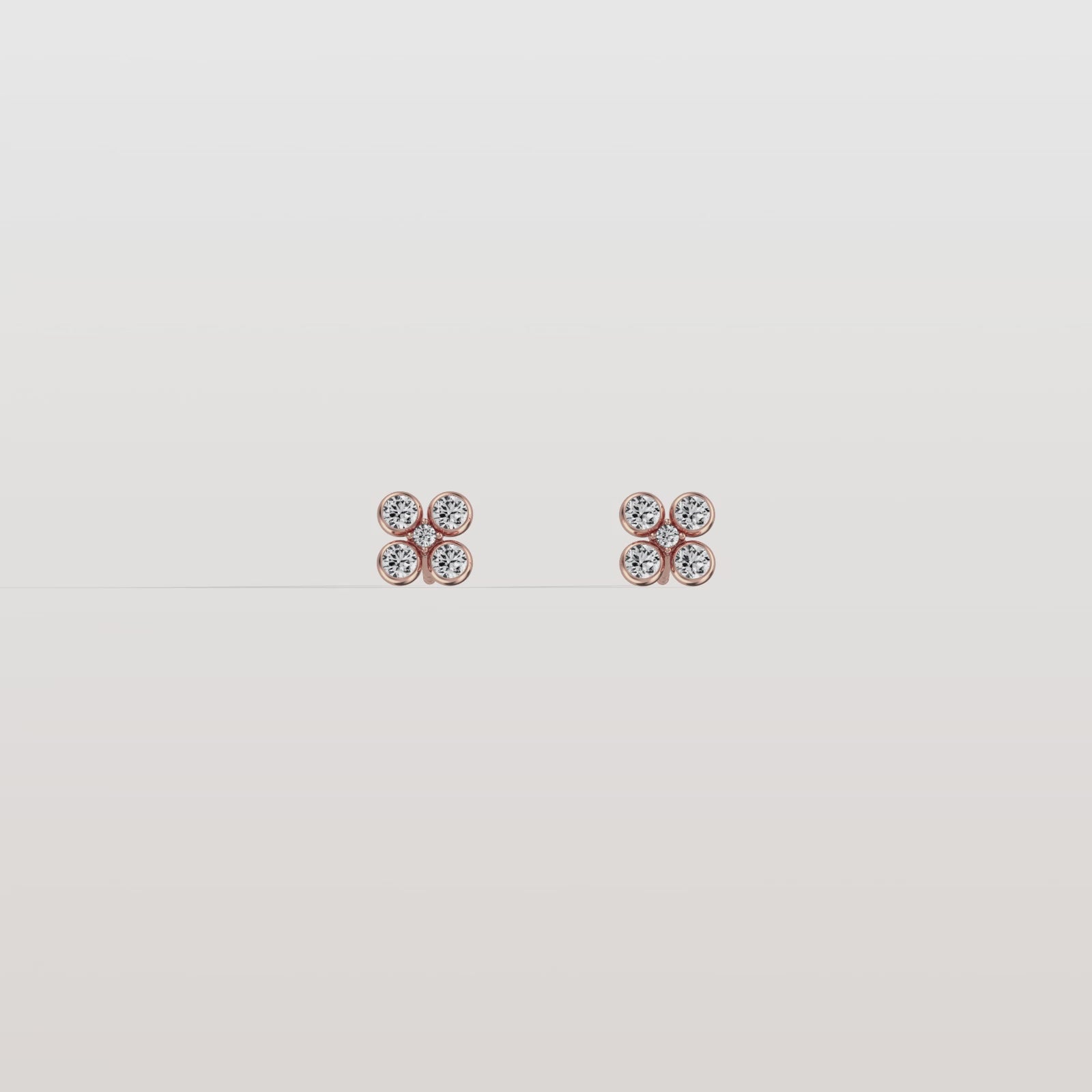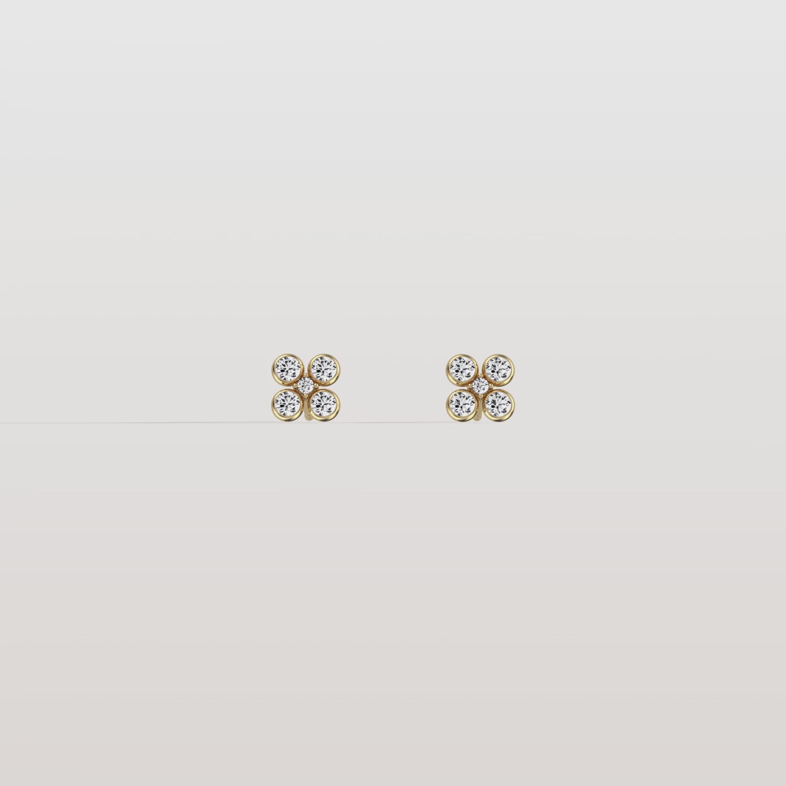14K Solid Gold Bezel Cluster Stud Earring With Lab Diamond