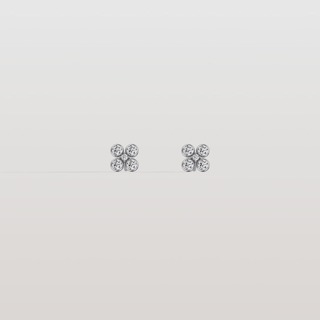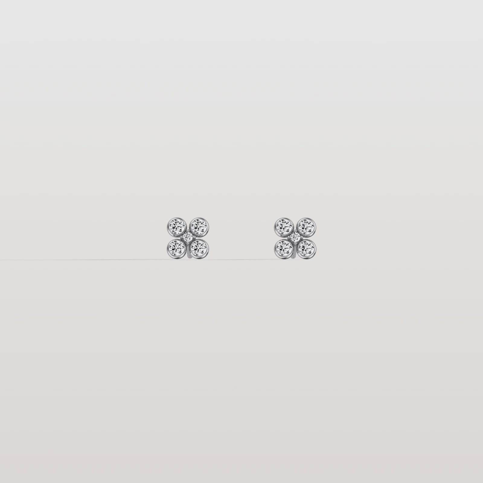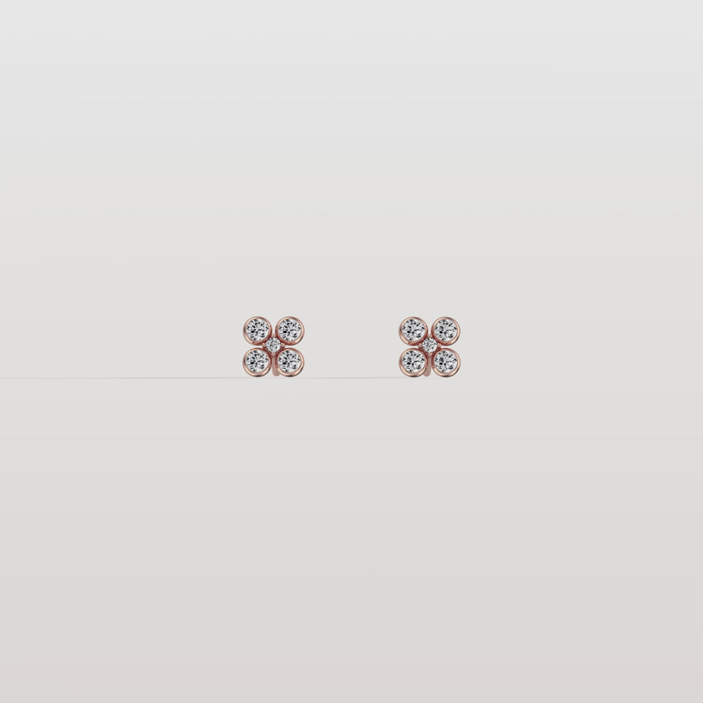 14K Solid Gold Bezel Cluster Stud Earring With Lab Diamond