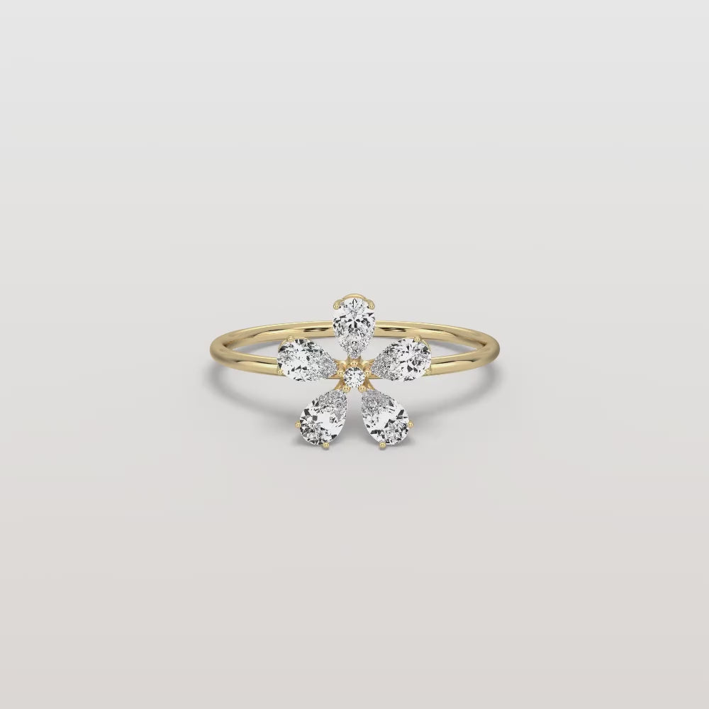Celebrate nature's elegance with our Floral Diamond Ring with Pear Cut Petals—a romantic, garden-inspired design featuring shimmering pear-cut lab diamonds arranged to resemble delicate flower petals. This unique ring is a perfect fusion of organic beauty and timeless luxury.