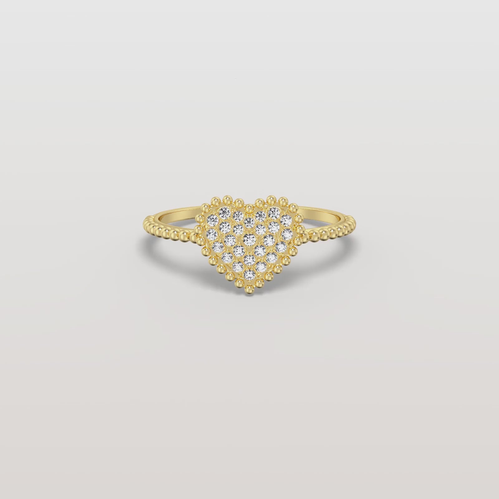 This beaded heart ring in 14K gold features a shimmering cluster of lab-grown diamonds that sparkles with every movement. Its playful yet elegant design adds a touch of whimsy to your everyday look, or makes a heartfelt gift for someone special.