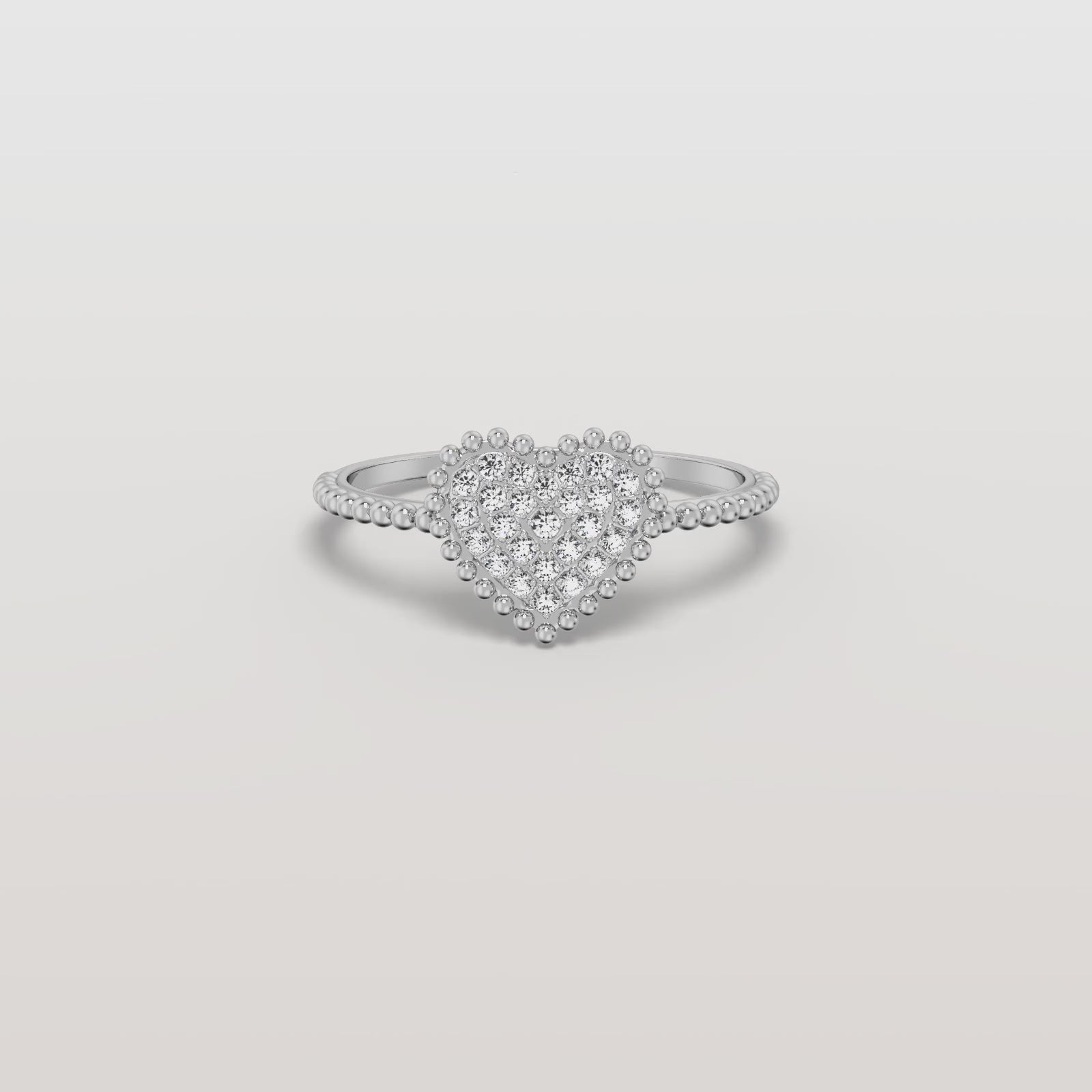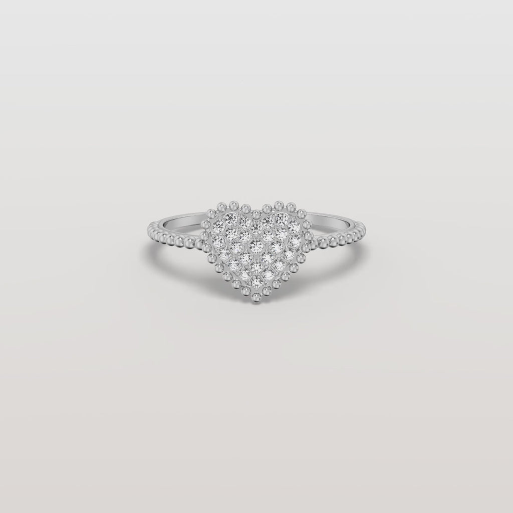 Lab Grown Diamond Beaded Heart Ring in 14K White Gold