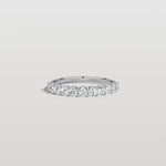 Unit price perThis luminous band features a row of lab diamonds extending three-fourths of the way down the shank in a French pavé setting style that allows light to reach the diamonds from multiple angles and enhances their sparkle