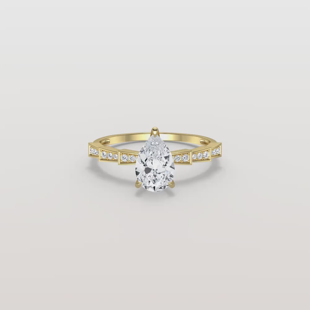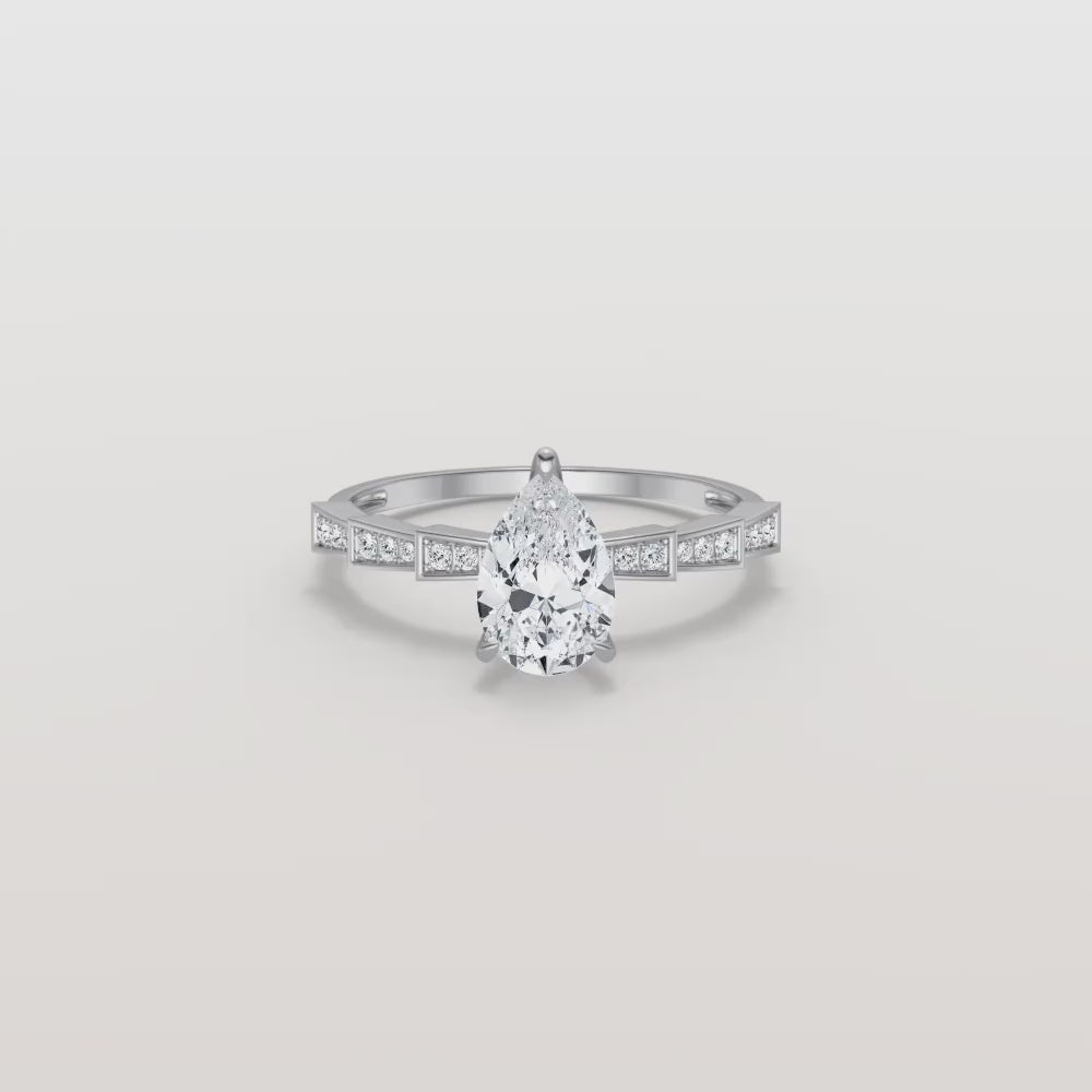 1CT Pear Cut Lab Diamond Hidden Halo Ring-Modern Style