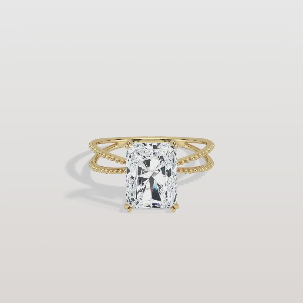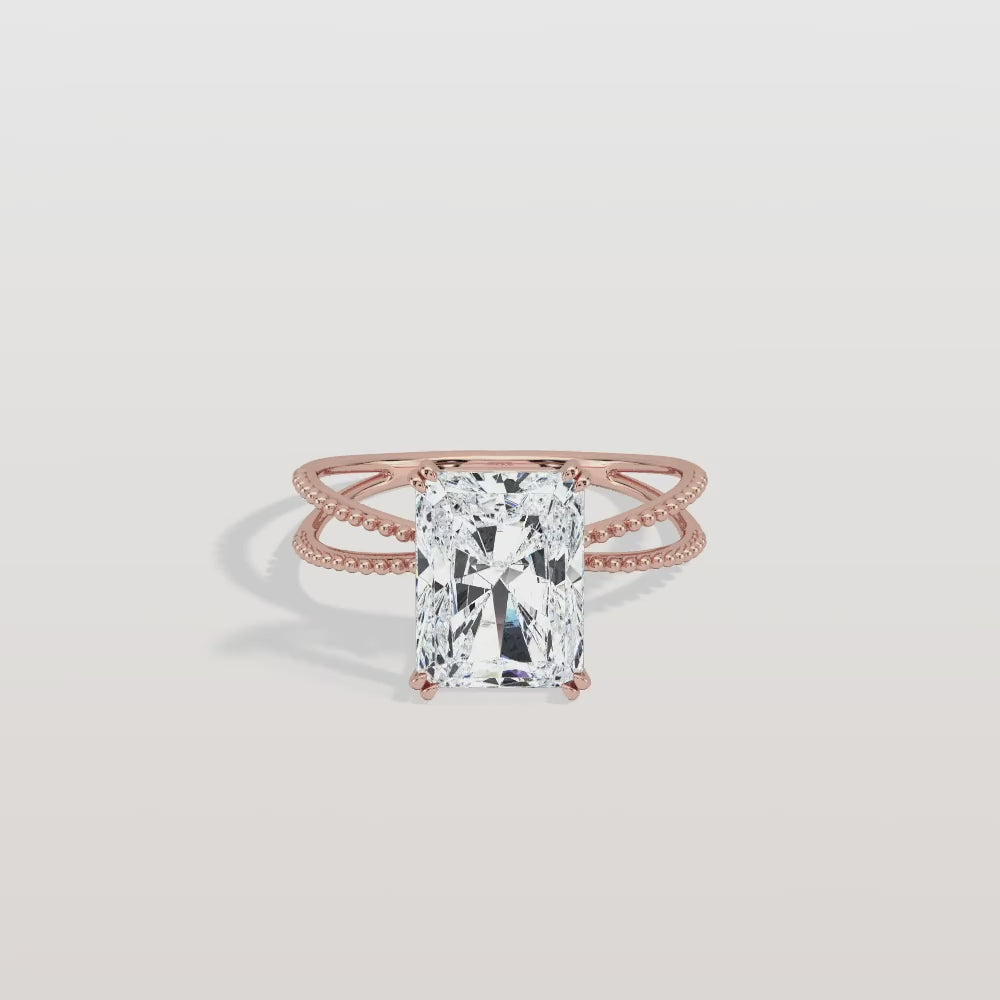 3CT Radiant Cut Lab Diamond Milgrain Hidden Halo Engagement Ring
