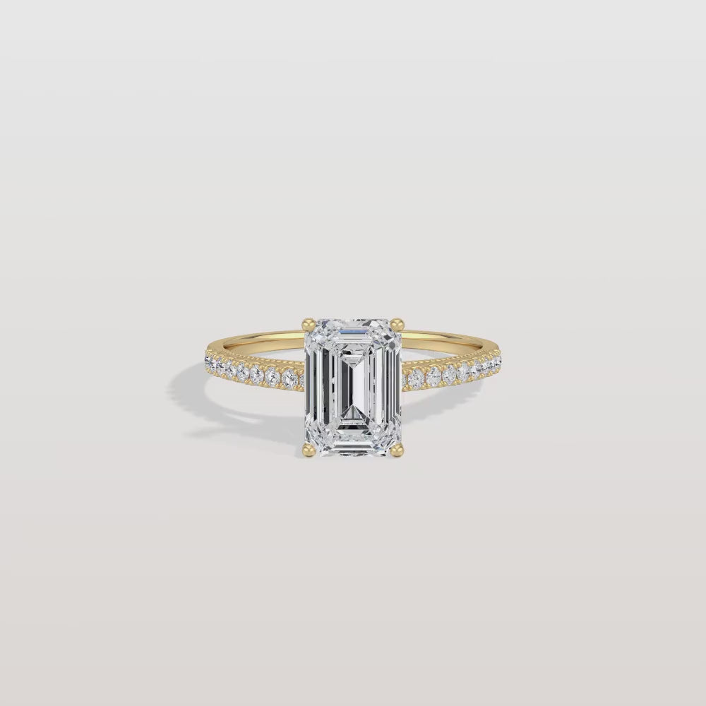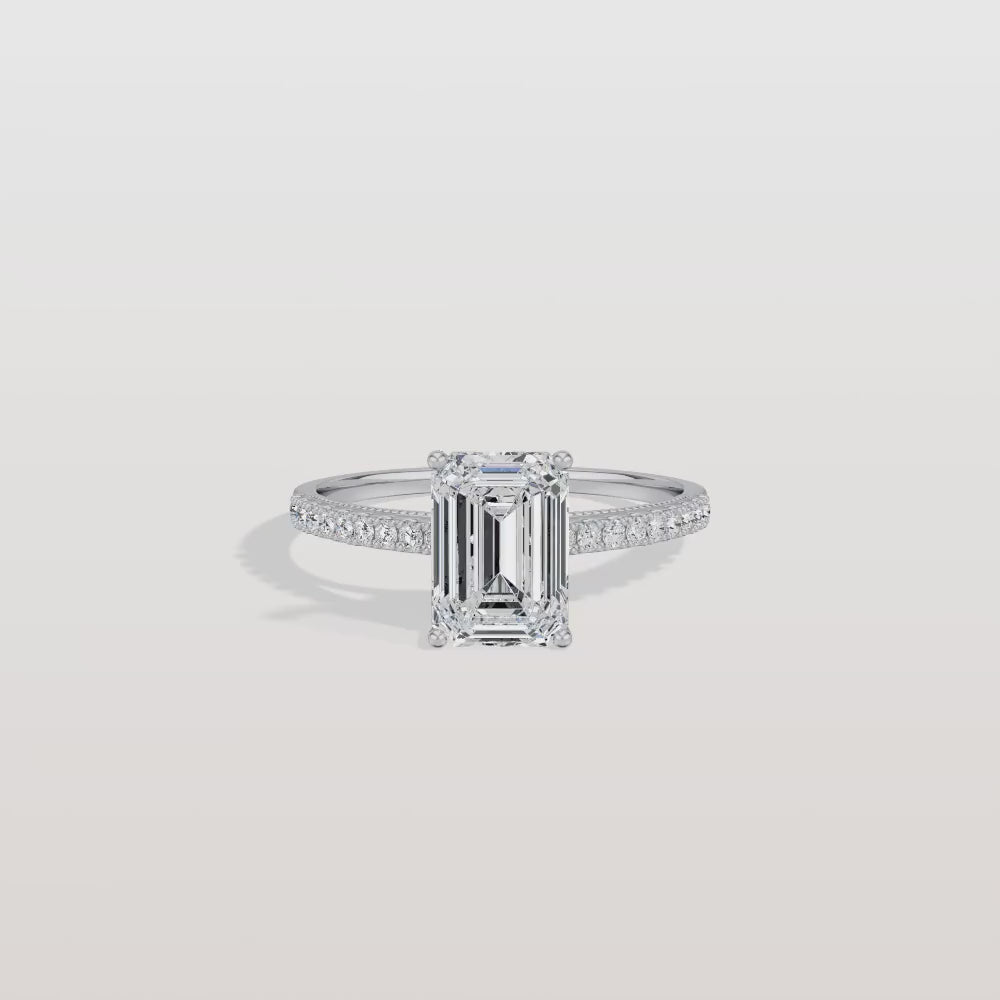 Suri丨Emerald Cut Solitaire Pave 2CT Lab Grown Engagement Ring
