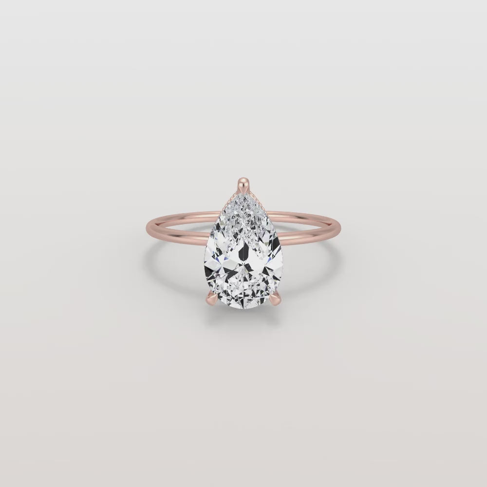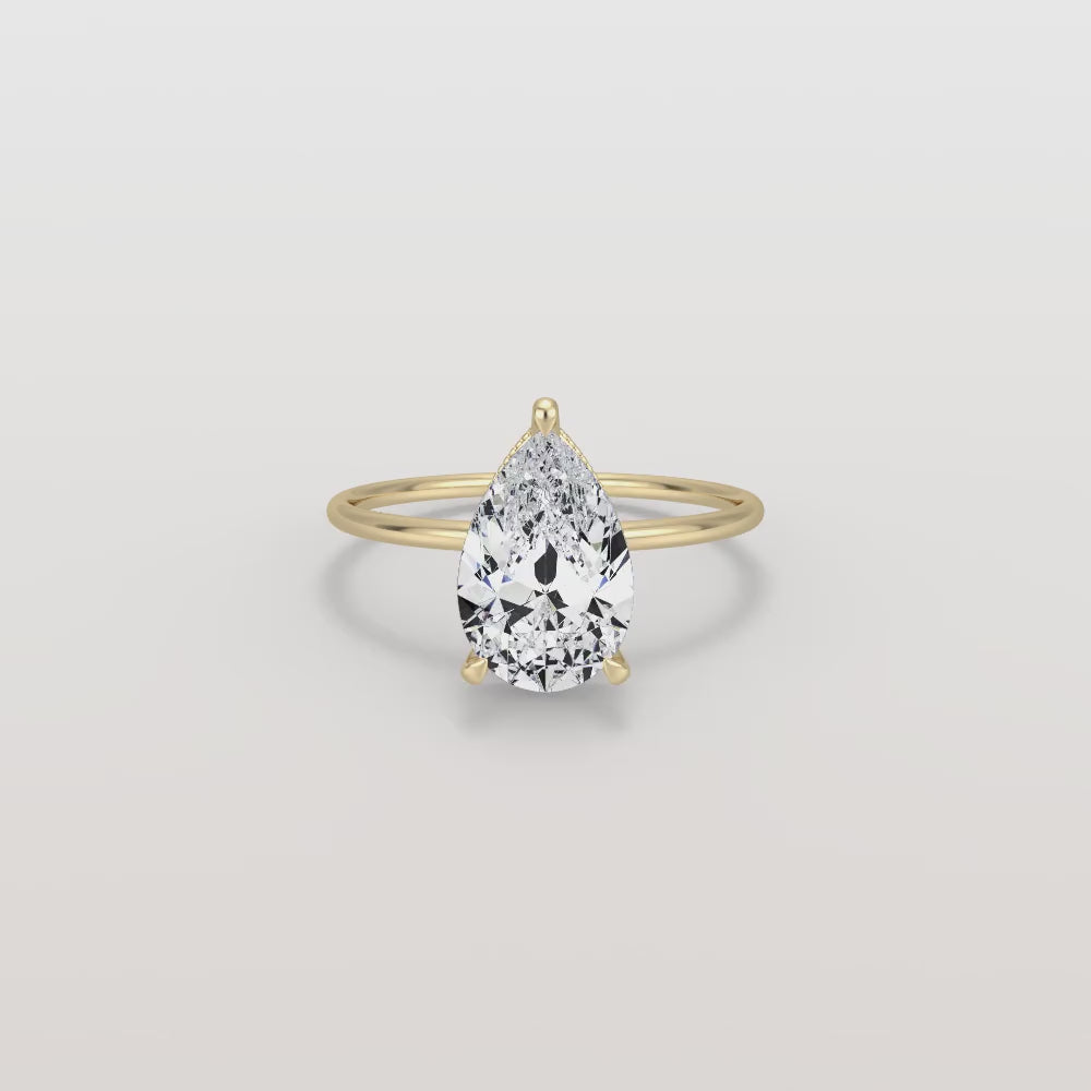 Elora丨Hidden Halo 2CT Pear Lab Diamond Ring with Basket Setting