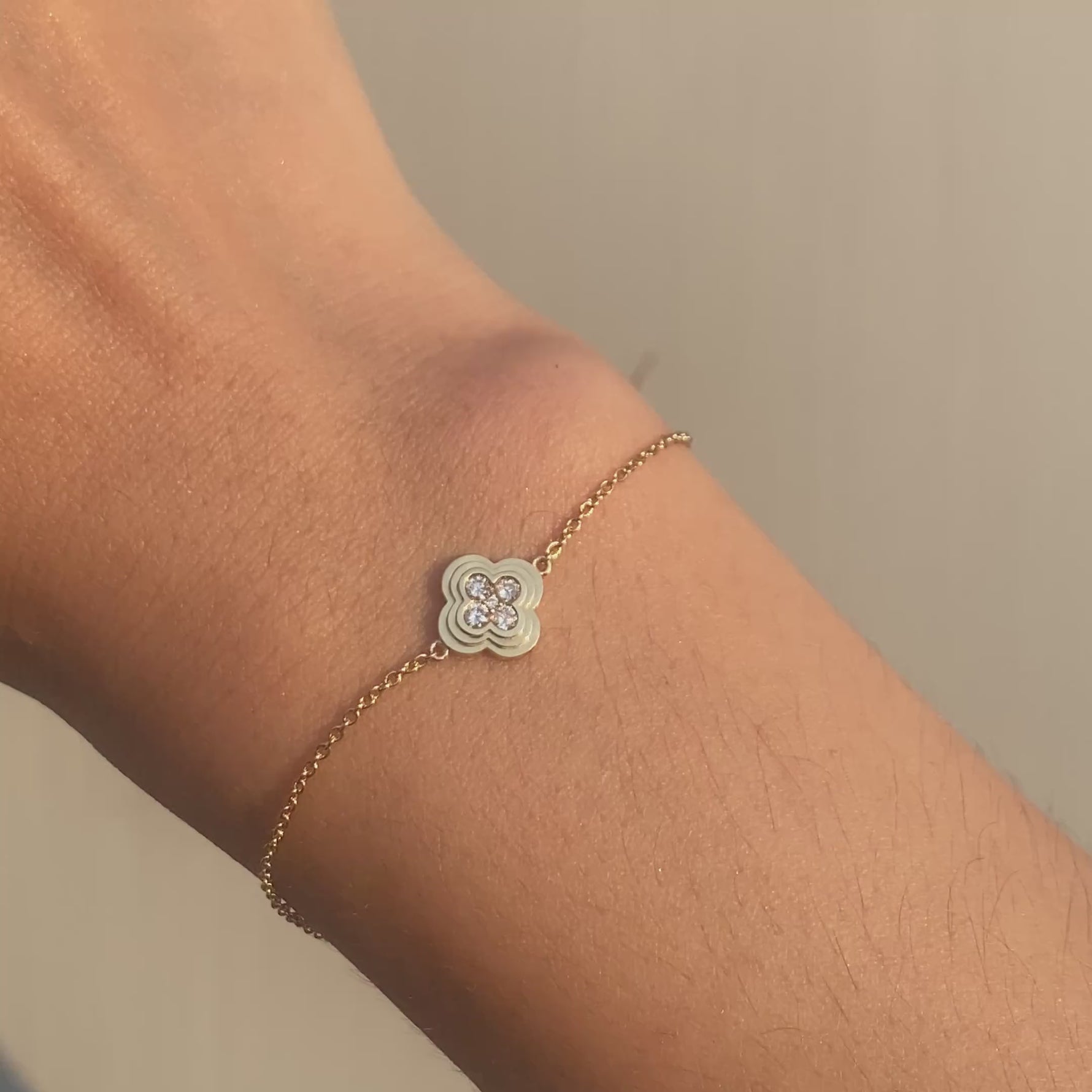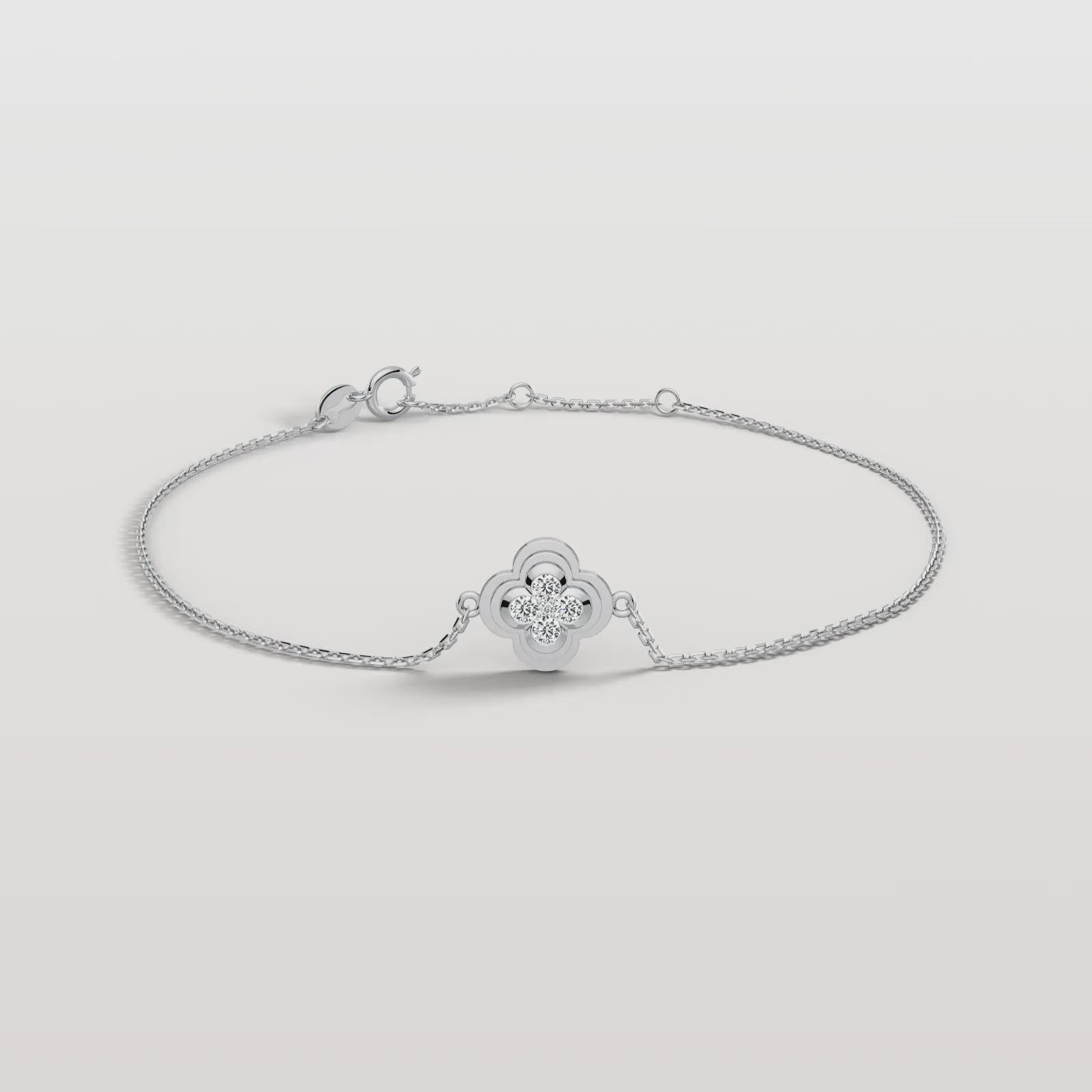 Lab Grown Diamond Station Clover Bracelet in 14K Solid Gold/Platinum
