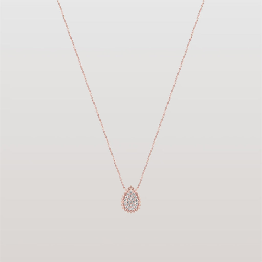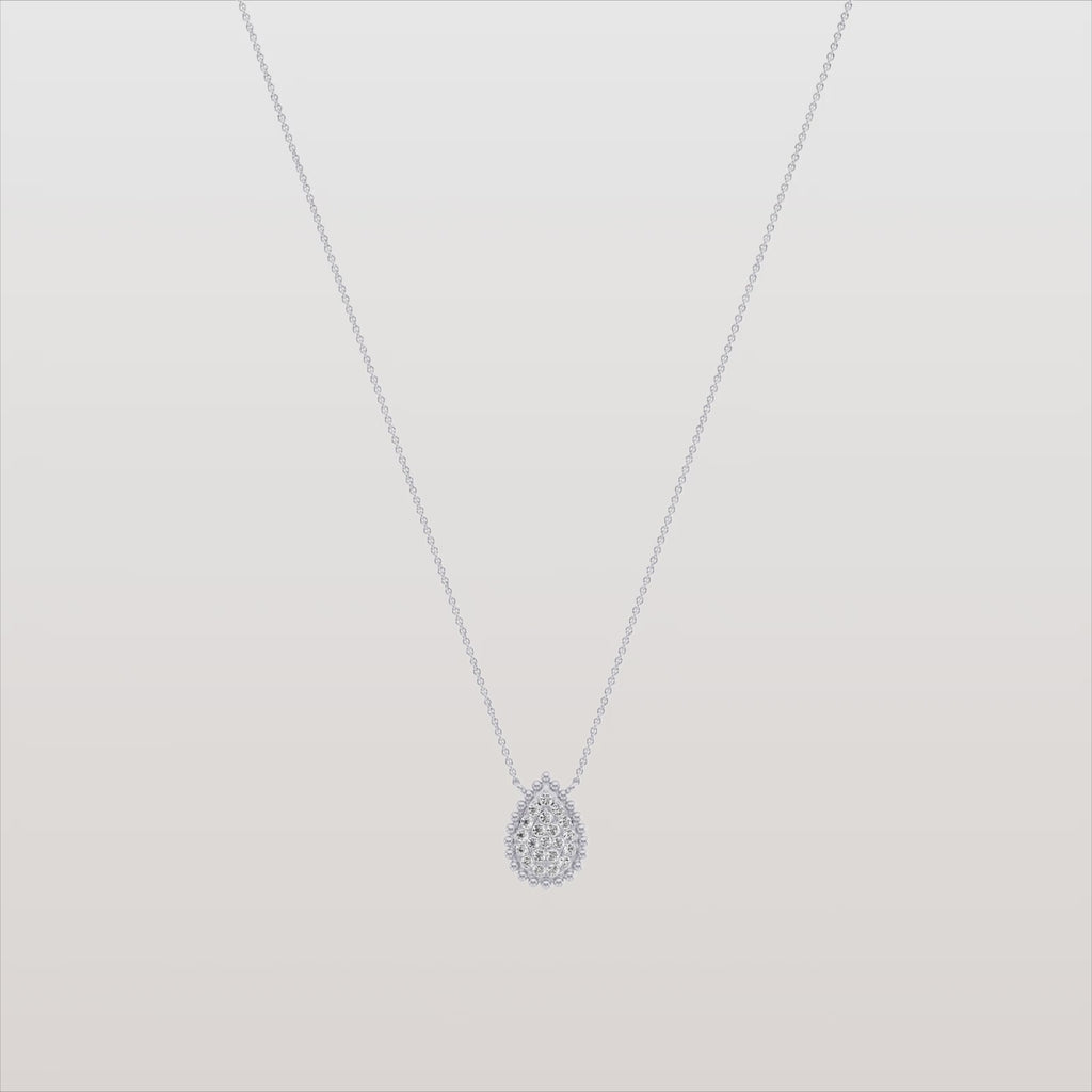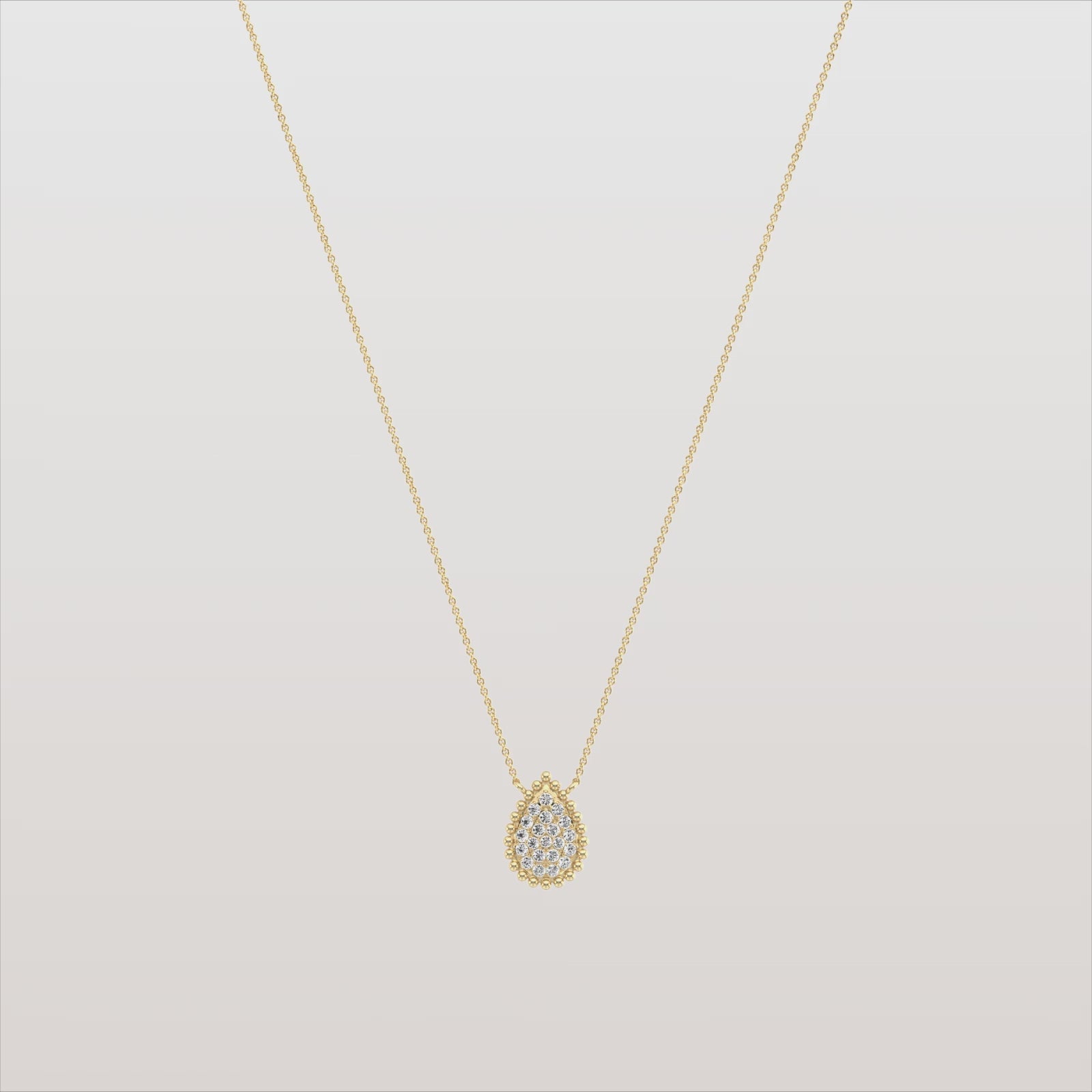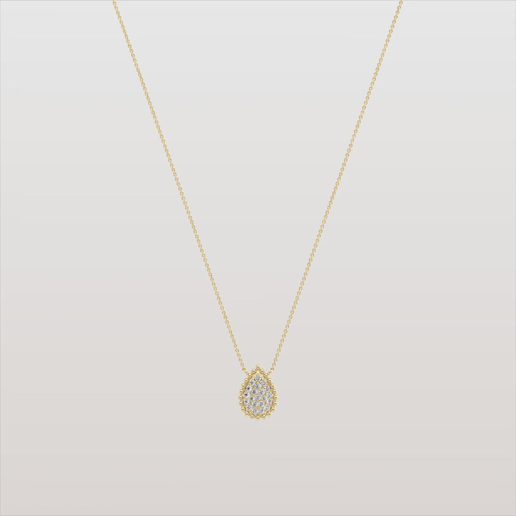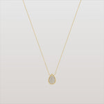 A delicate teardrop pendant lined with lab grown diamonds, set in warm 14K solid gold/platinum. This design with bead is a quiet statement of refined elegance, perfect for those who appreciate a modern. Special, sparkling, and so easy to wear.