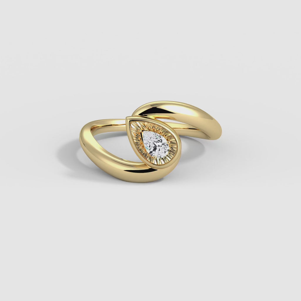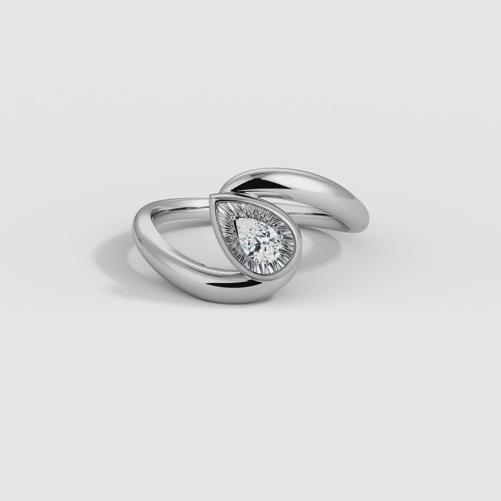 Bezel Pear Diamond Bypass Ring in Sterling Silver