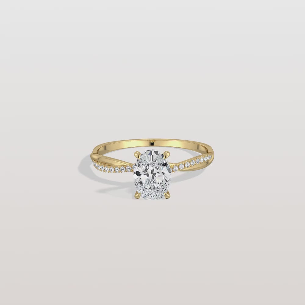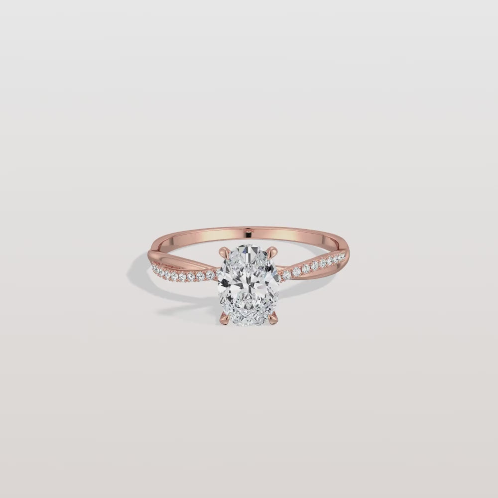1CT Oval Cut Lab Diamond Twisted Engagement Ring In Solid Gold/Platinum