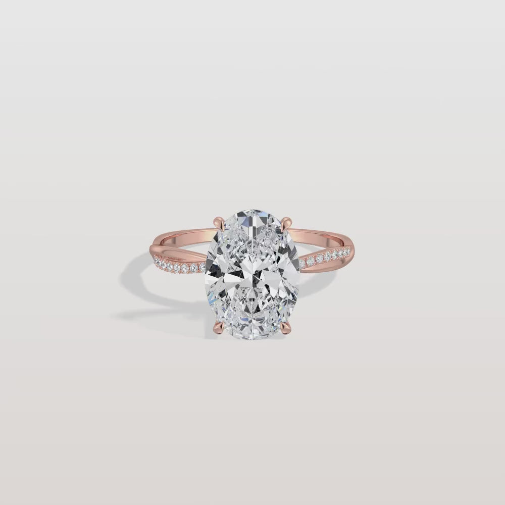 3CT Oval Cut Lab Diamond Twisted Engagement Ring In Solid Gold/Platinum