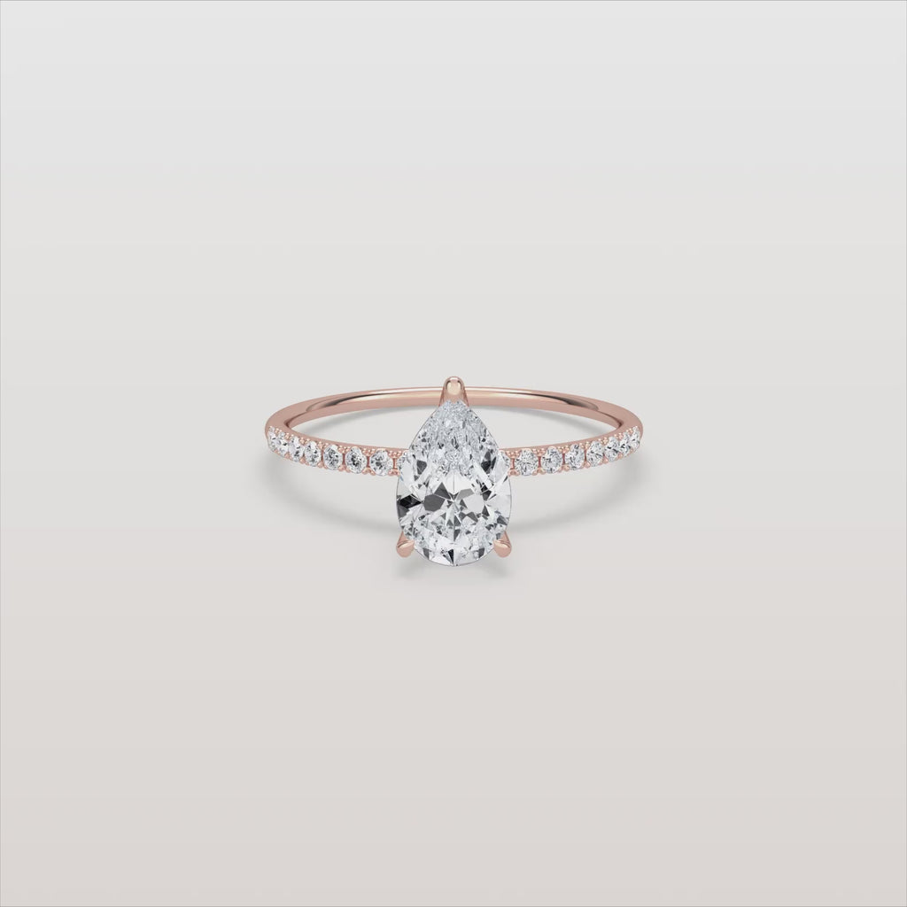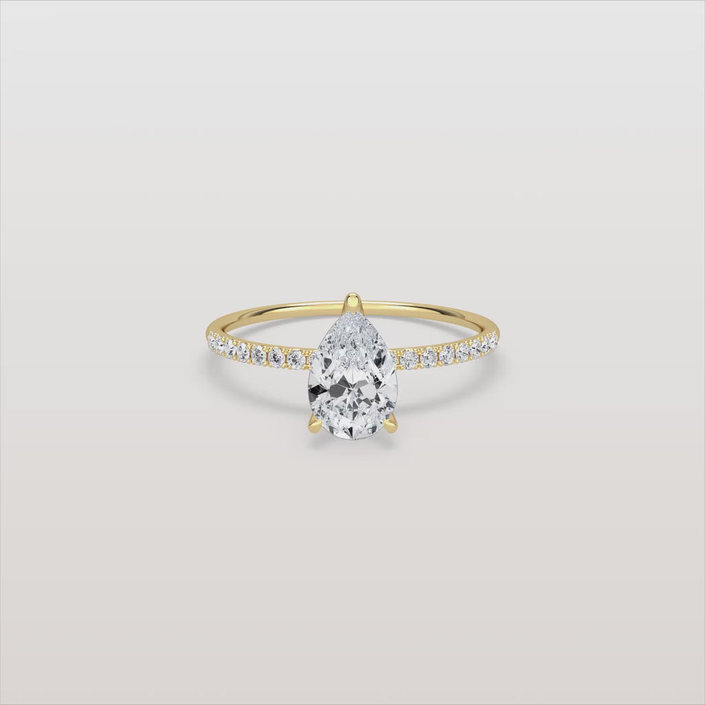 Unit price perA graceful pear-shaped lab diamond floats atop a shimmering pavé band,crafted to captivate from every angle.It Features a hidden halo beneath the center stone for added brilliance.