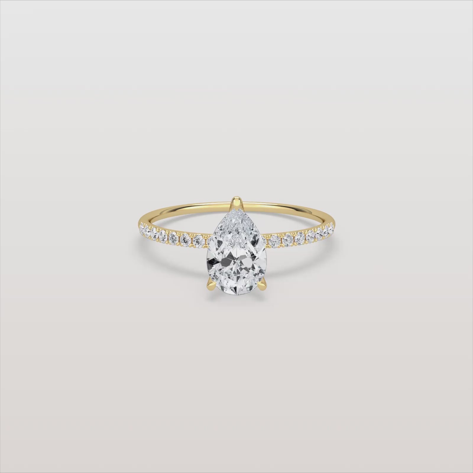 Selene丨1CT Pear Lab Diamond Engagement Ring–Pave Band in 14K Gold