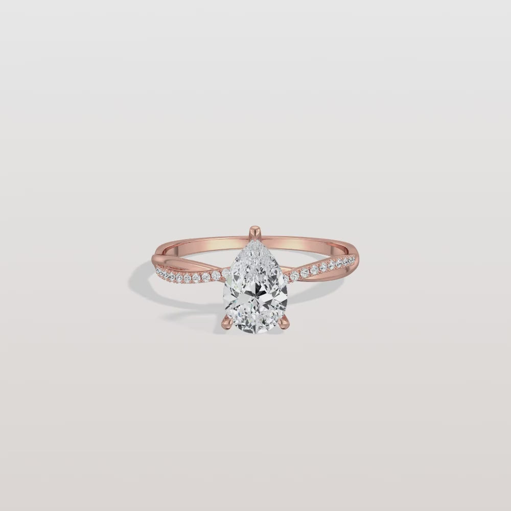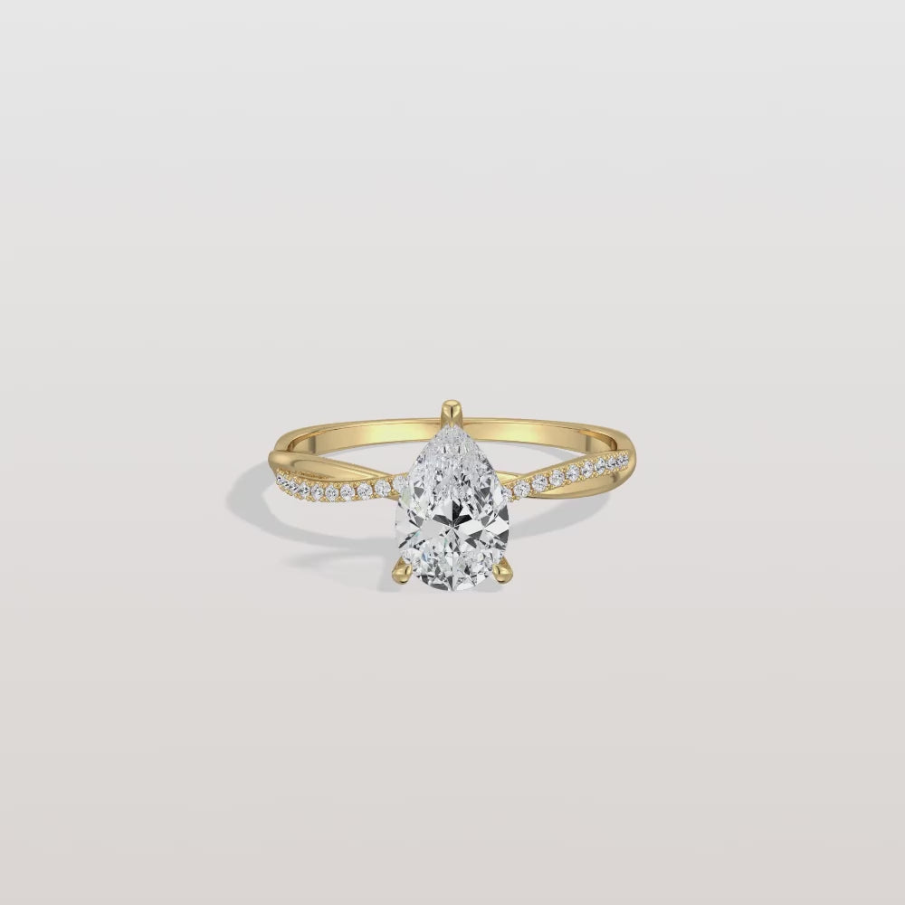 Noelle丨1CT Pear Lab Diamond Engagement Ring–Twisted 14K Gold Band