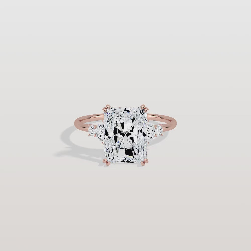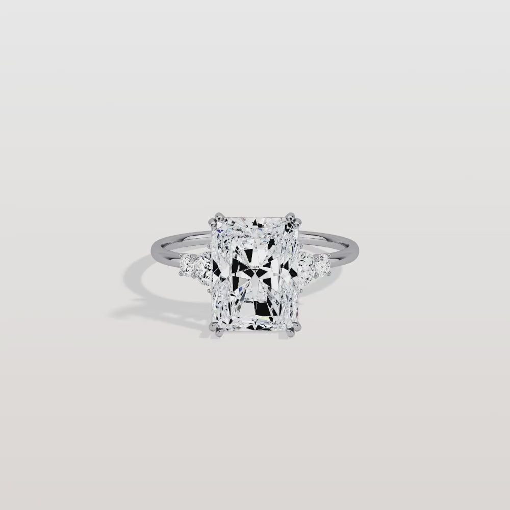 Serene丨3CT Radiant Cut Lab Diamond Side Stone Engagement Ring