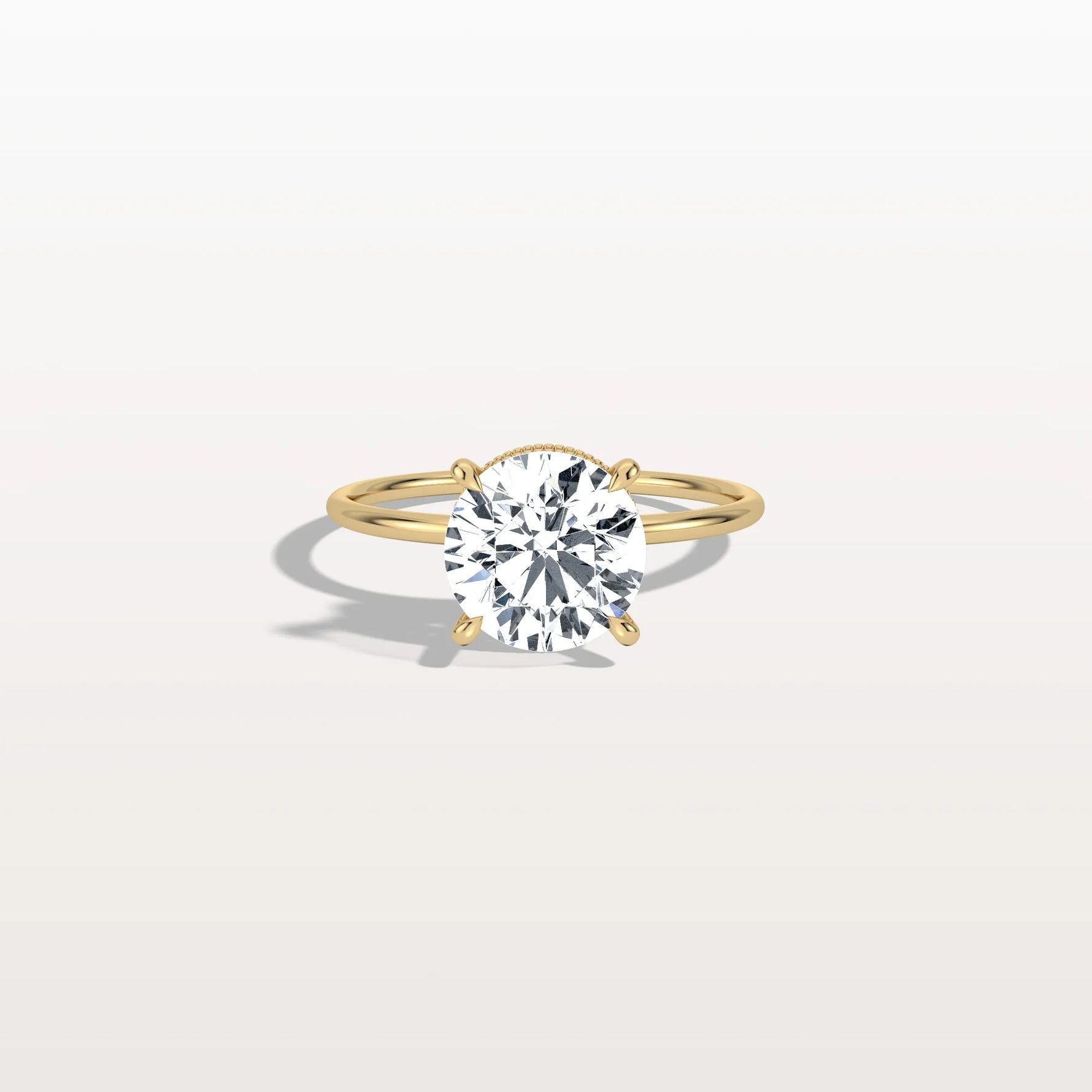 Unit price perA sophisticated 14k solitaire ring featuring a hidden halo set with pave lab diamonds in the gallery beneath the center stone. Elevated by a cathedral-style setting and delicate claw prongs, the ring blends timeless elegance with an extra layer of brilliance only visible from the side.